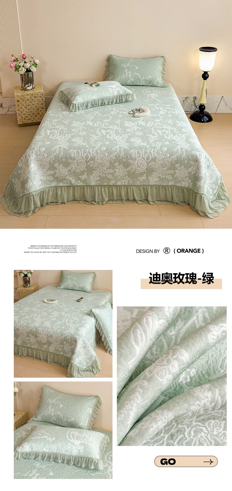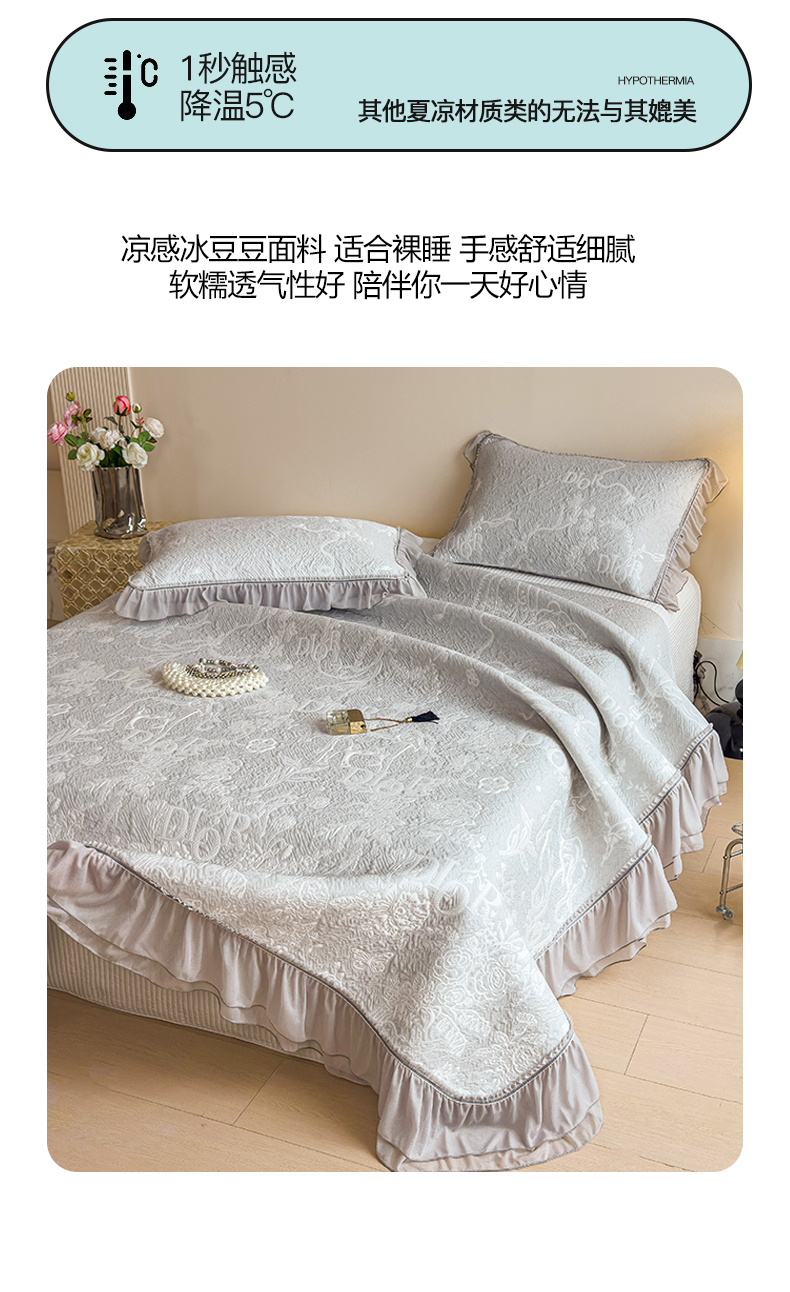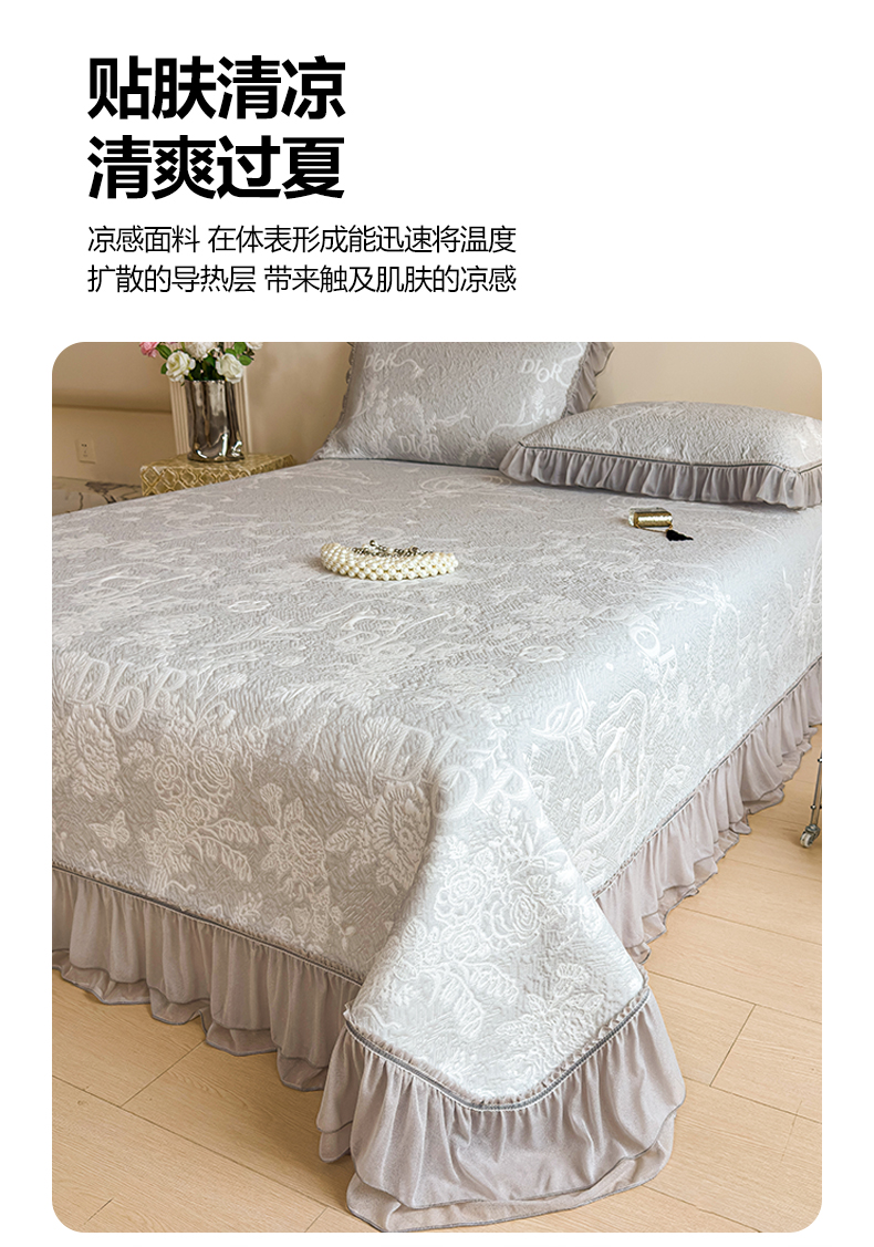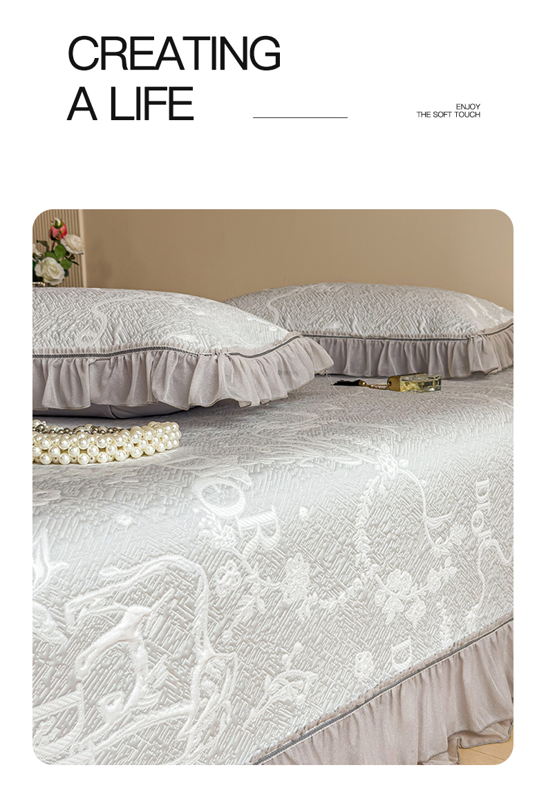 慕木家纺 2026新款A类三明治复合乙纶提花冰豆豆花边床盖款床迪奥风系列(提供买家秀) 迪奥玫瑰-灰