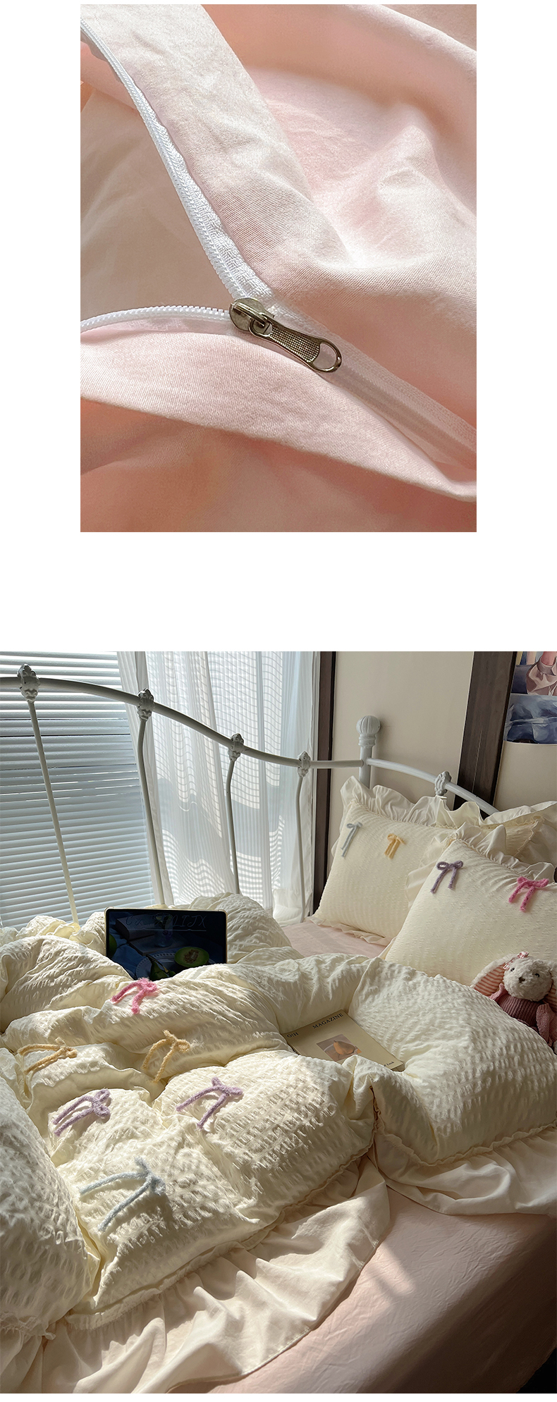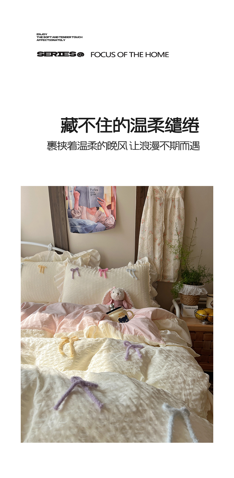 当前位置: 91家纺网 > 商品网购 > 床品套件 > 四件套 > 其它四件套 > 顾里家纺 2026新款韩系仙女泡泡纱丝带四件套 香草丝带