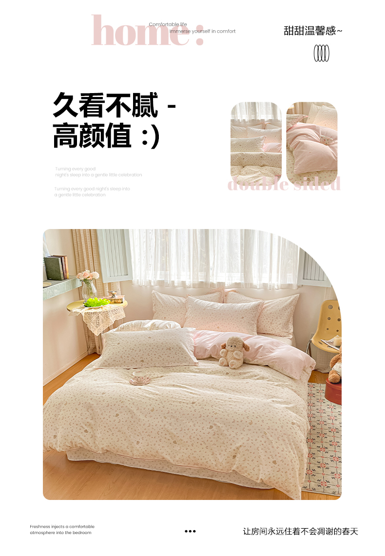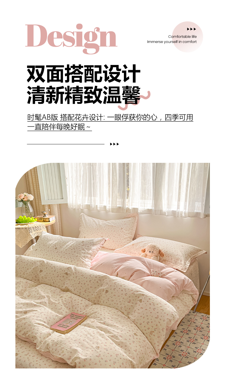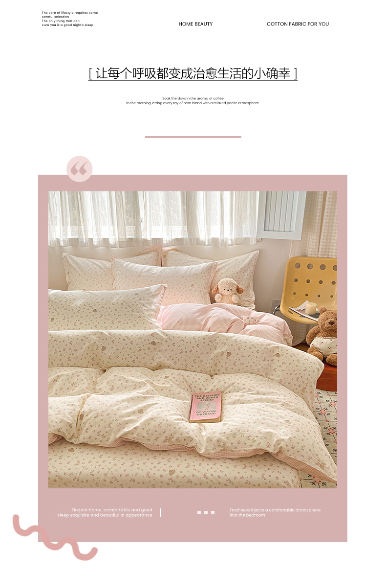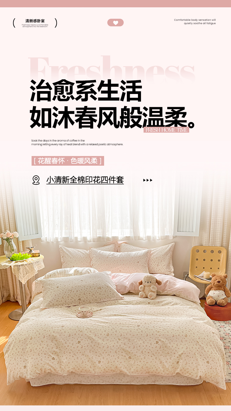 当前位置: 91家纺网 > 商品网购 > 床品套件 > 四件套 > 全棉普通四件套 > 女子家纺 2026新款全棉纯棉印花单品系列花卉款四件套 微花耳耳粉