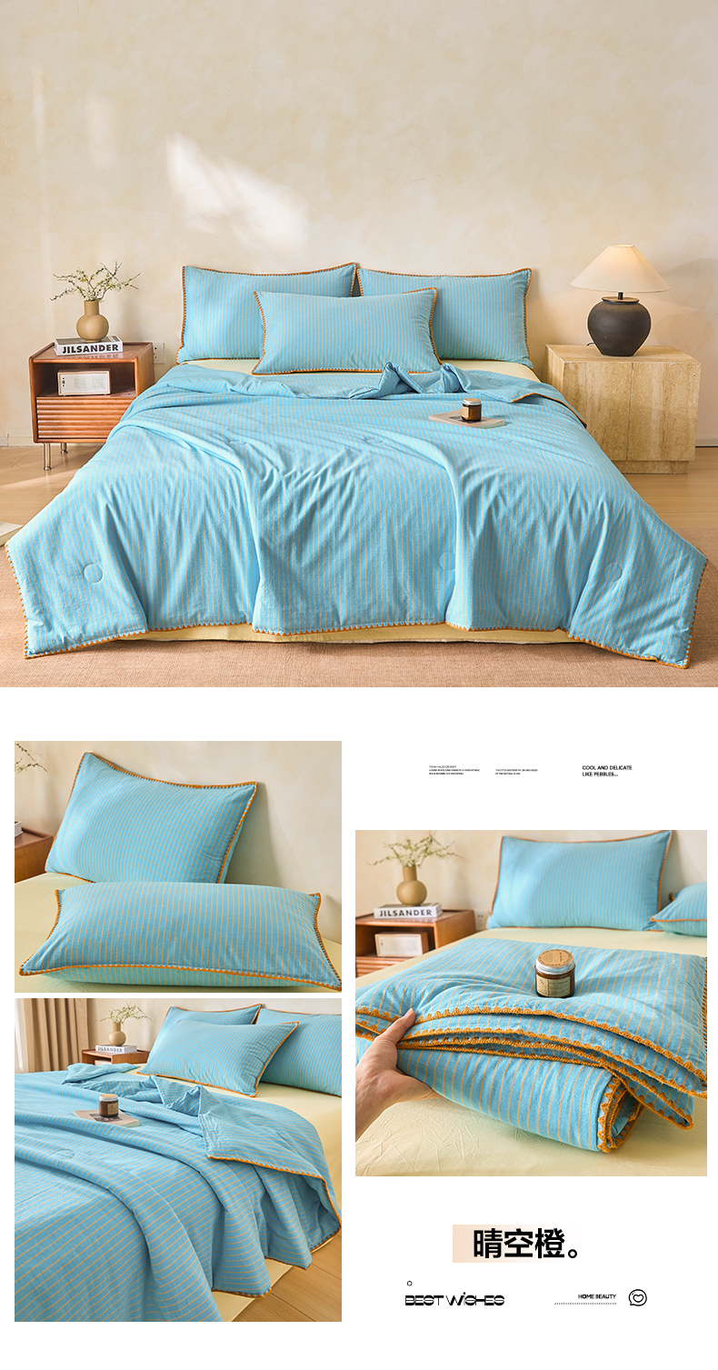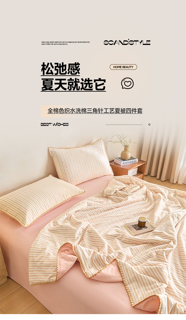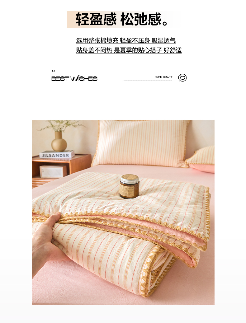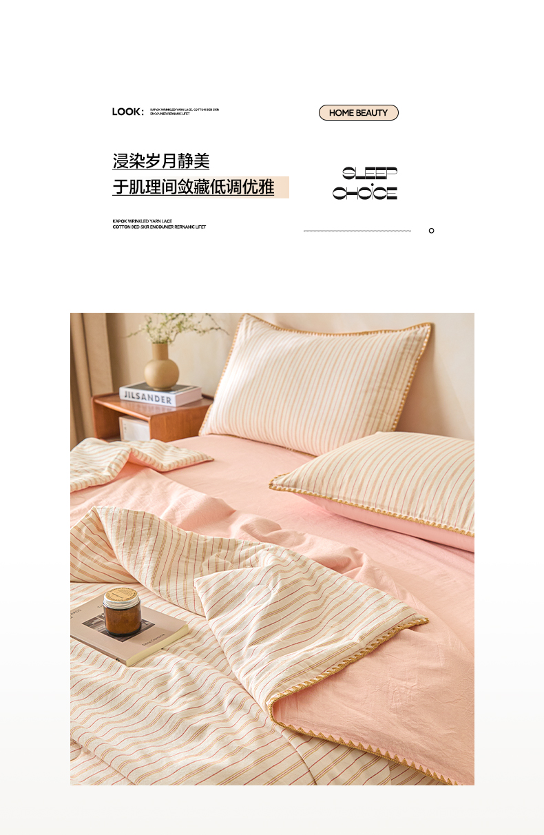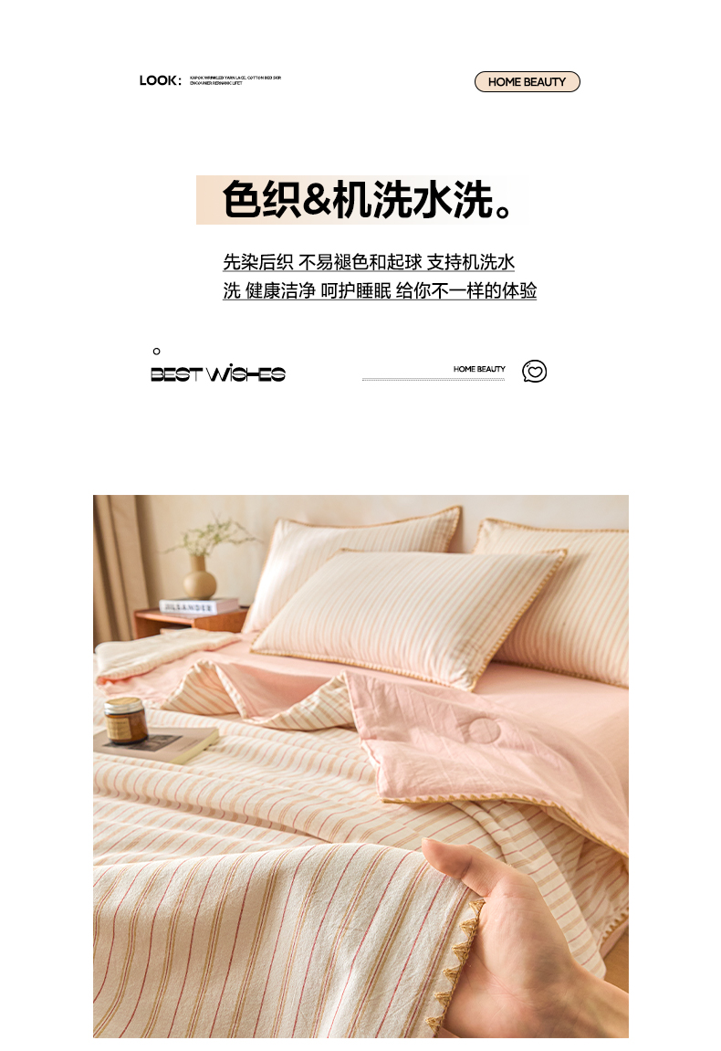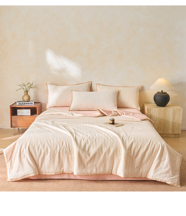 当前位置: 91家纺网 > 商品网购 > 床品套件 > 四件套 > 夏被四件套 > 如一 2026新款全棉色织水洗棉条纹三角针夏被四件套 晨曦粉