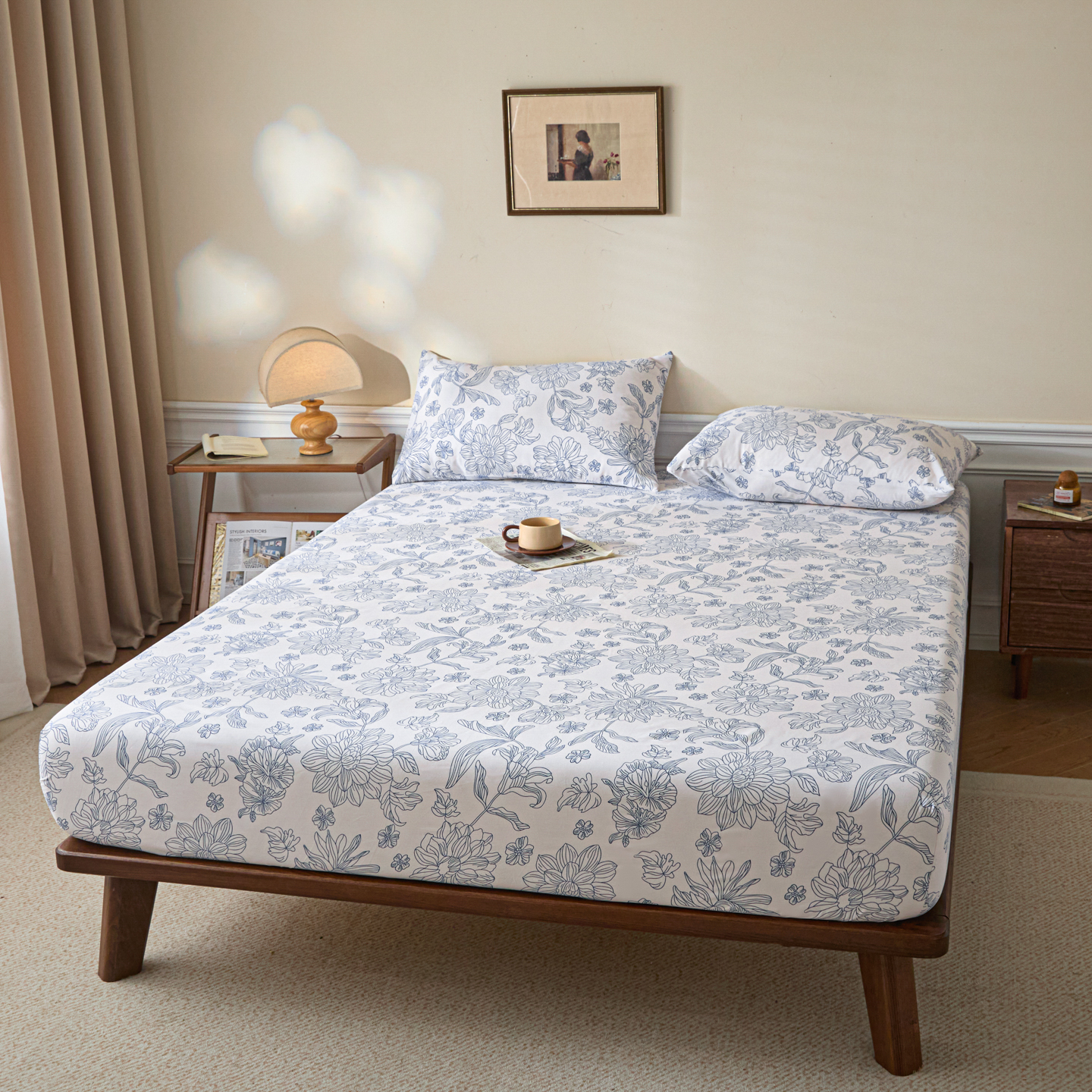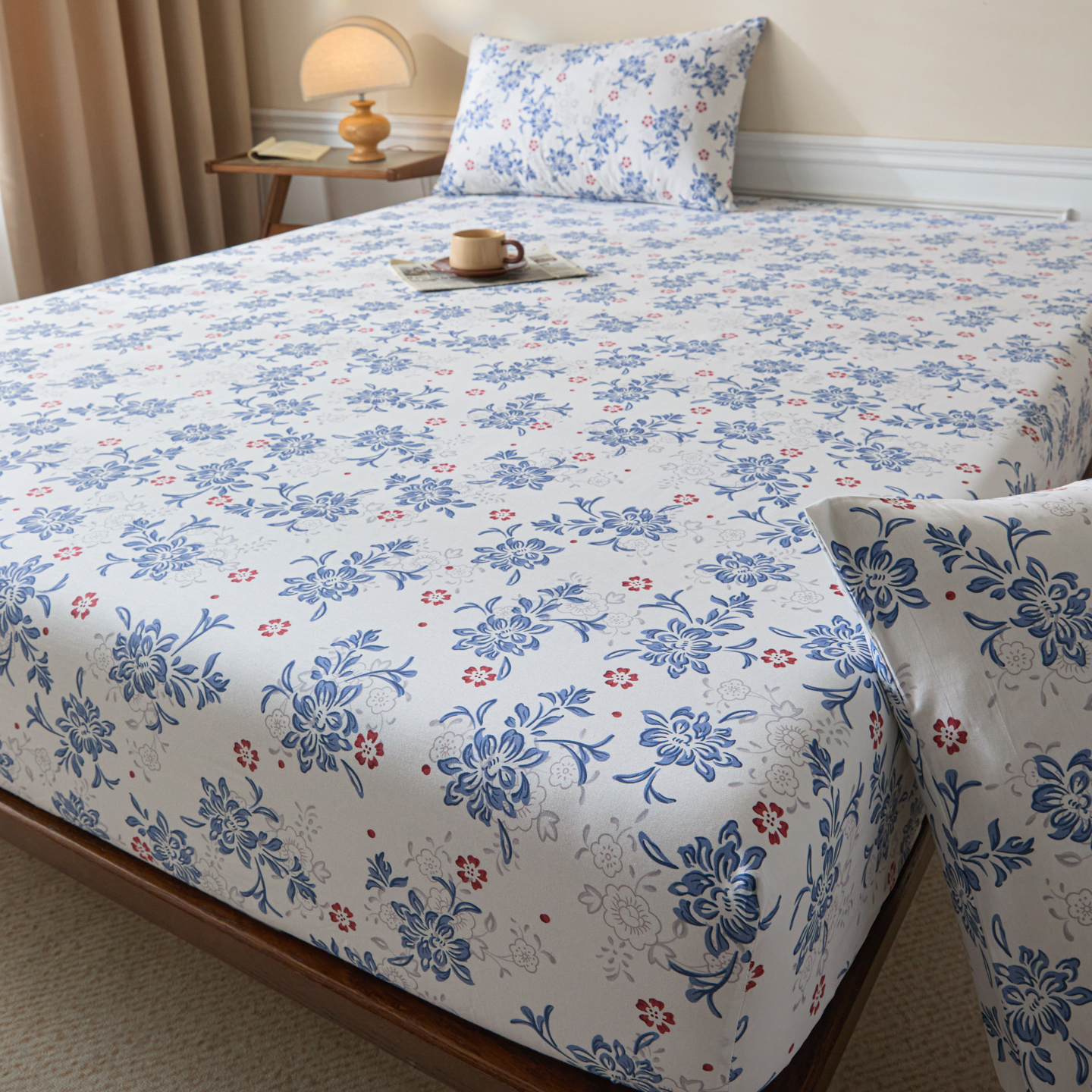 (总)梵克保罗 2026新款全棉专版花型青花瓷系列单品床笠,墨染,釉知春,韵意盈蓝