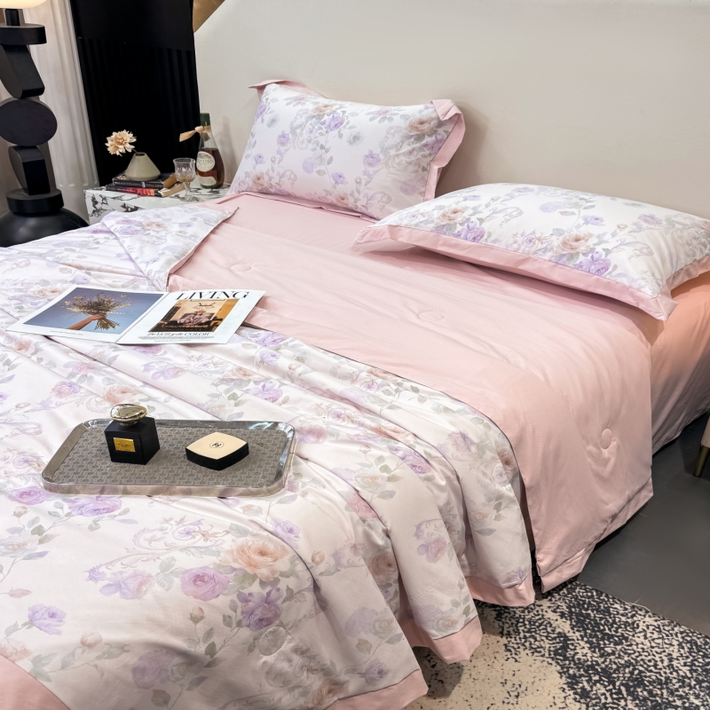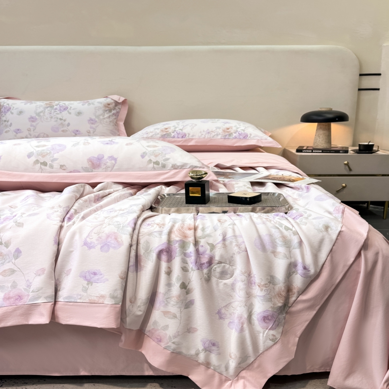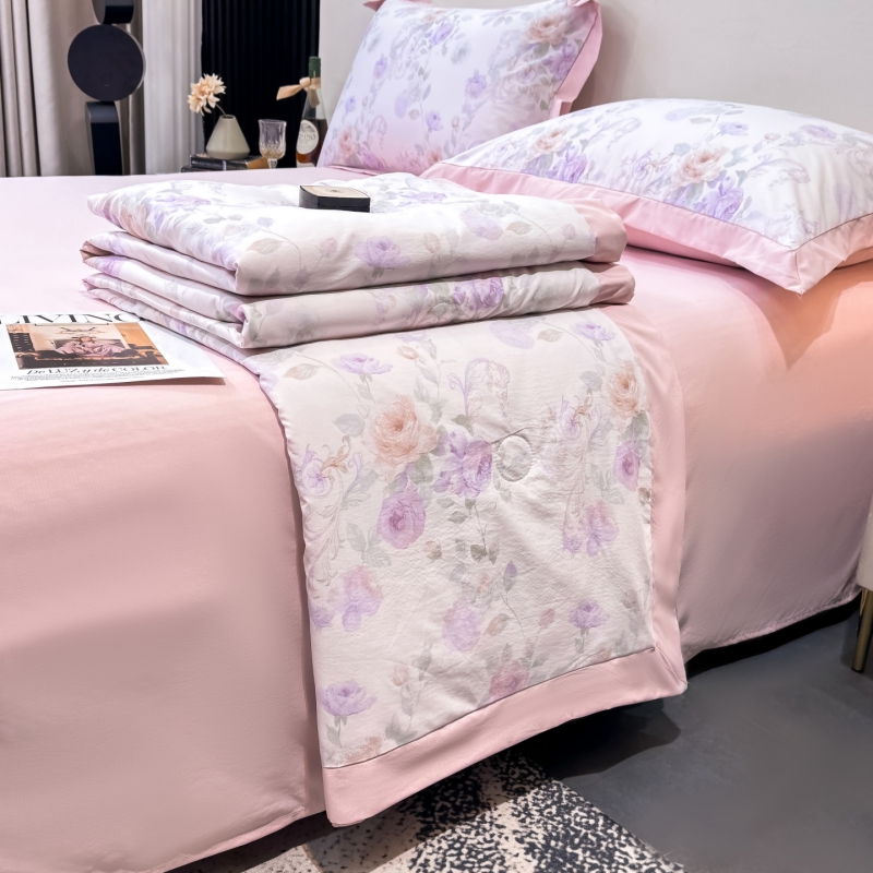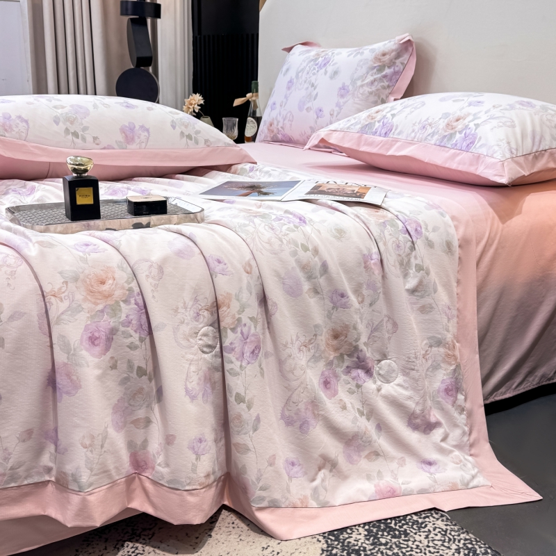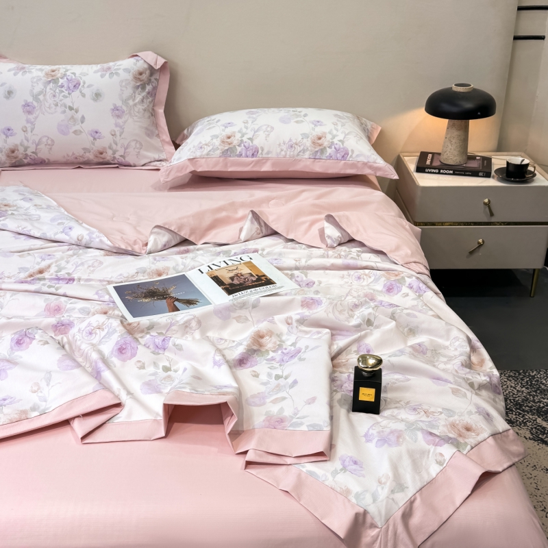 新款凉感天丝棉夏被夏凉被空调被夏被四件套系列 伊莉莎(粉)