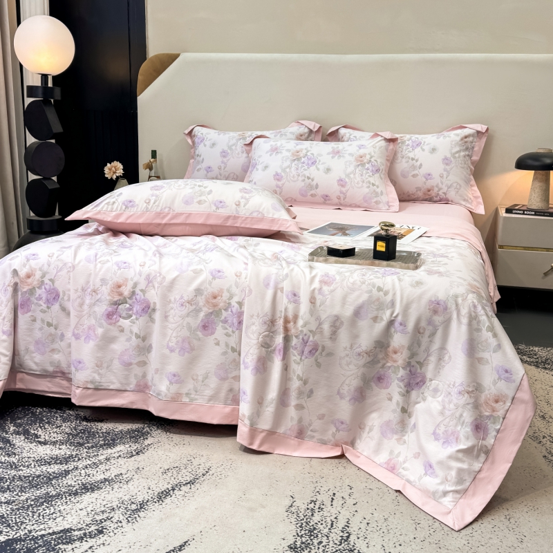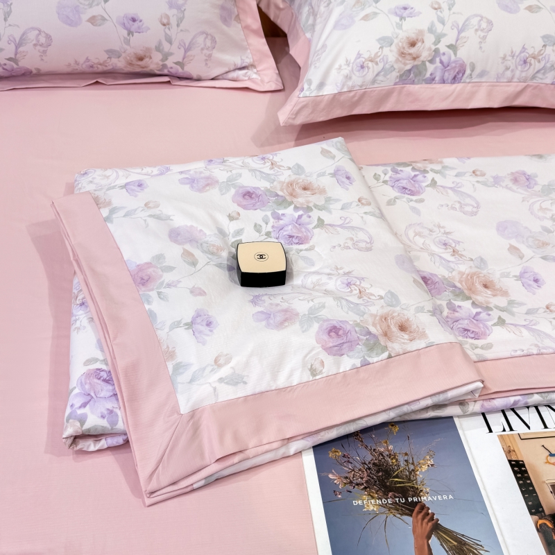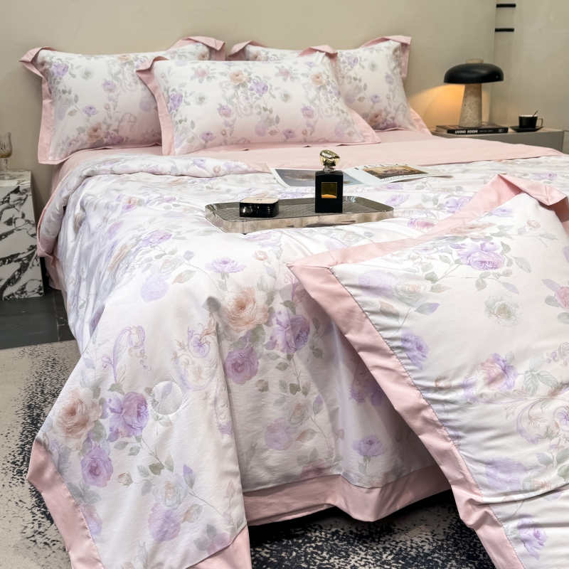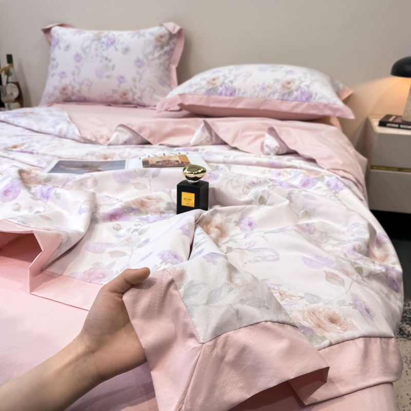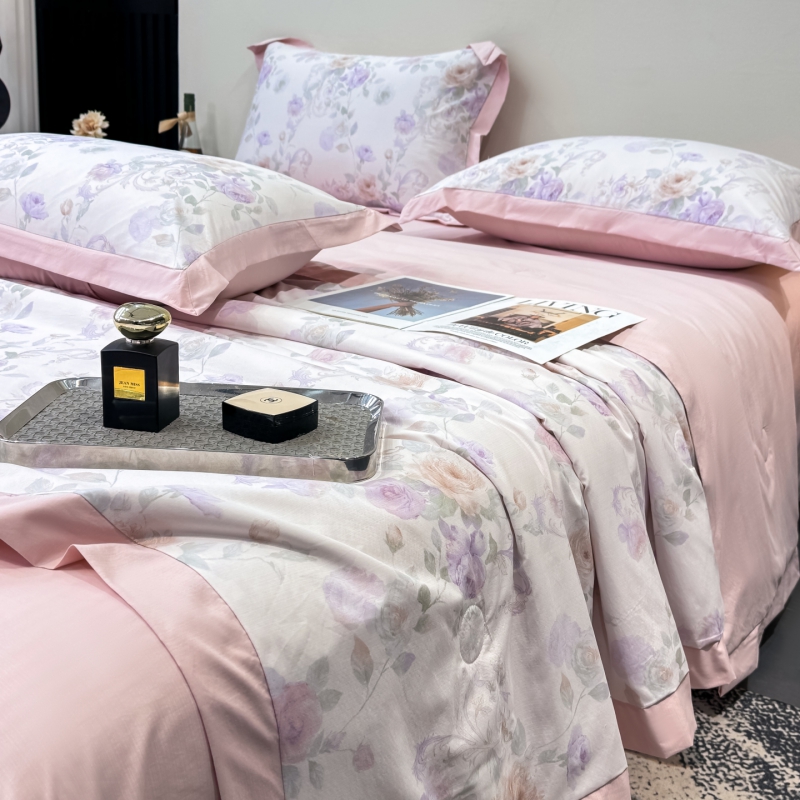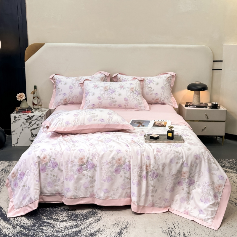 新款凉感天丝棉夏被夏凉被空调被夏被四件套系列 伊莉莎(粉)