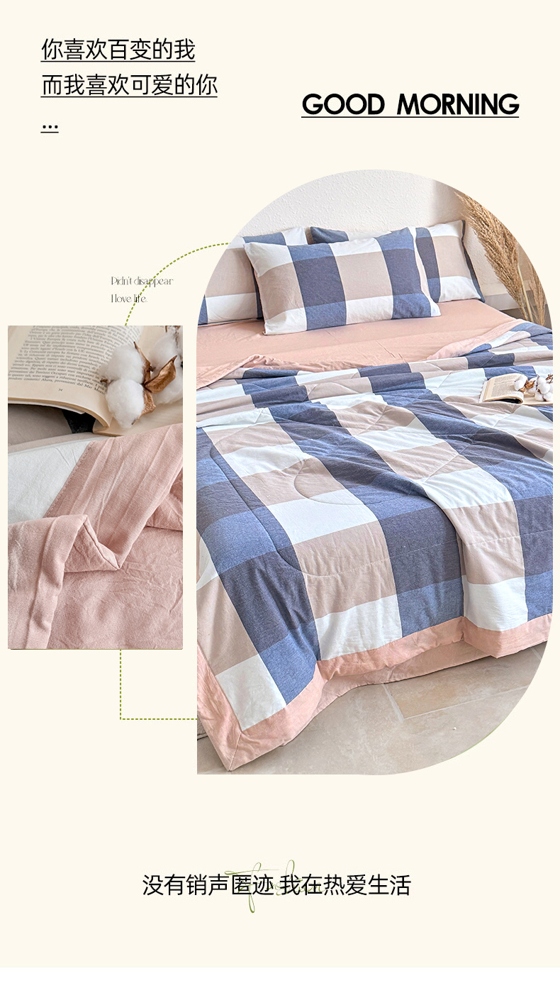 • 91家纺网 家纺一手货源 找家纺 家贝爱 2026新款全棉色织新疆棉花夏被夏凉被空调被 大蓝格