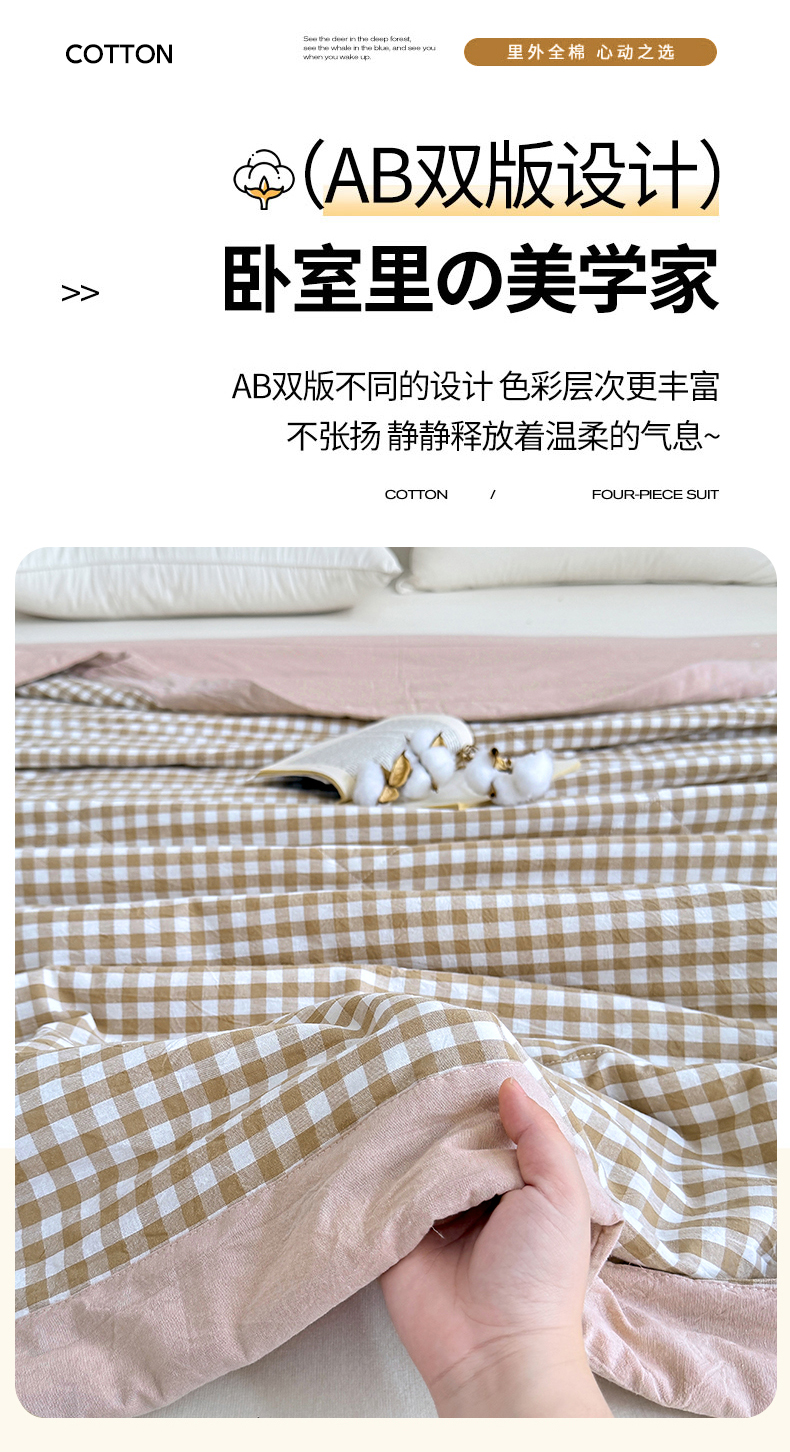 (总)家贝爱 2026新款全棉纯棉水洗色织被套单件被套单品单被套,大蓝格,粉韵格,海蓝格,简夕格,简易蓝,蓝橙格,蓝黄格,马卡绿格,时尚桔,雾莲格,小咖格,小蓝格,雅尚蓝,中灰格