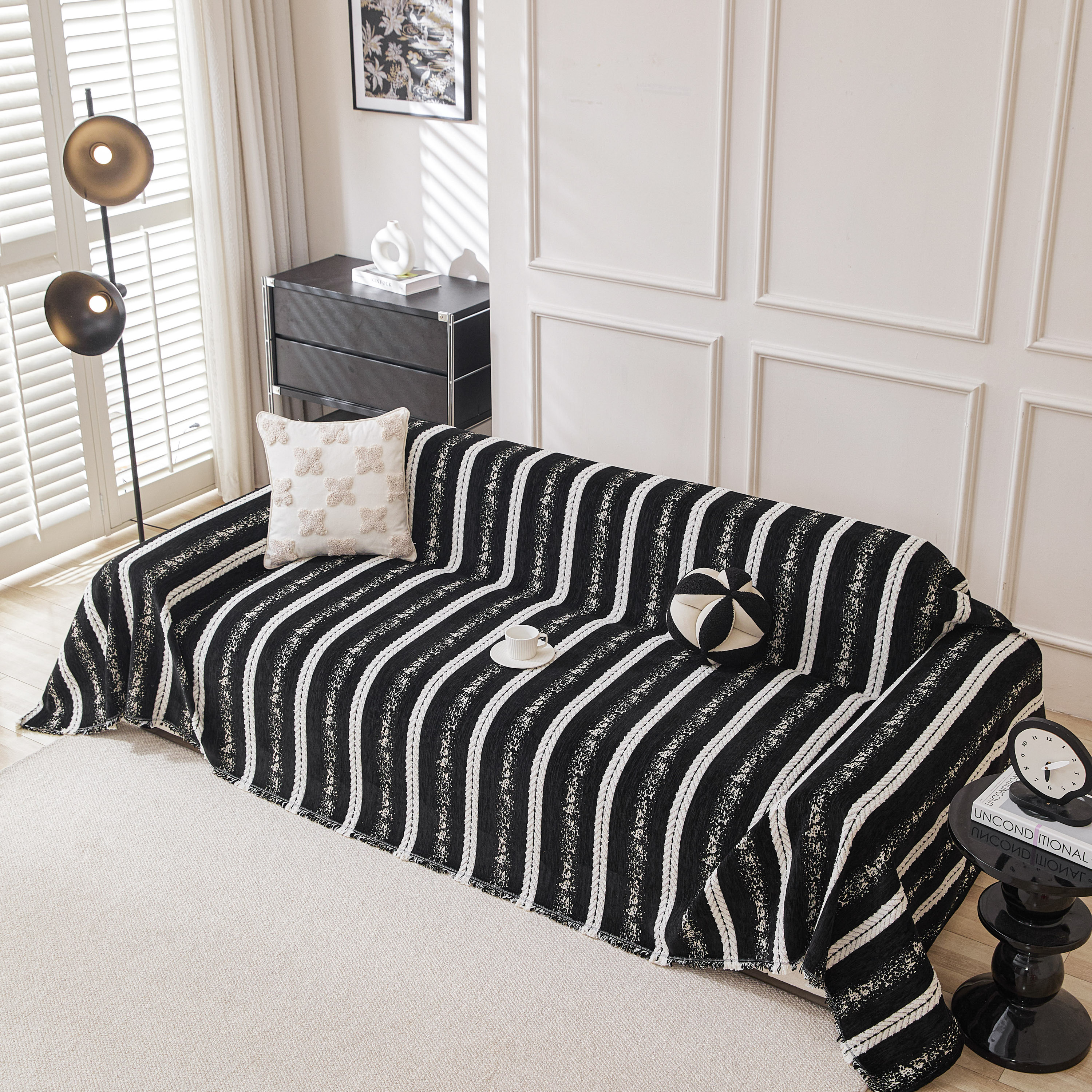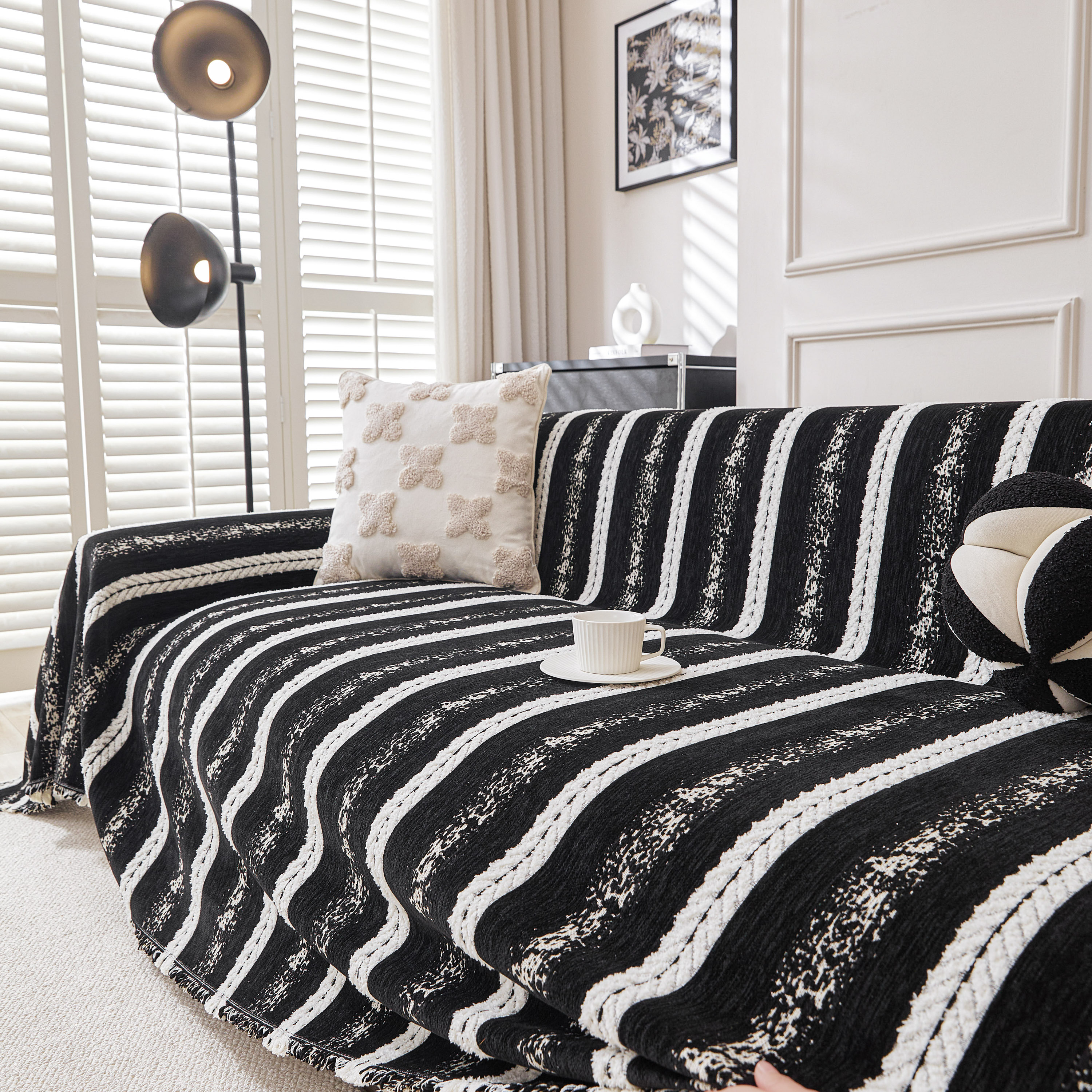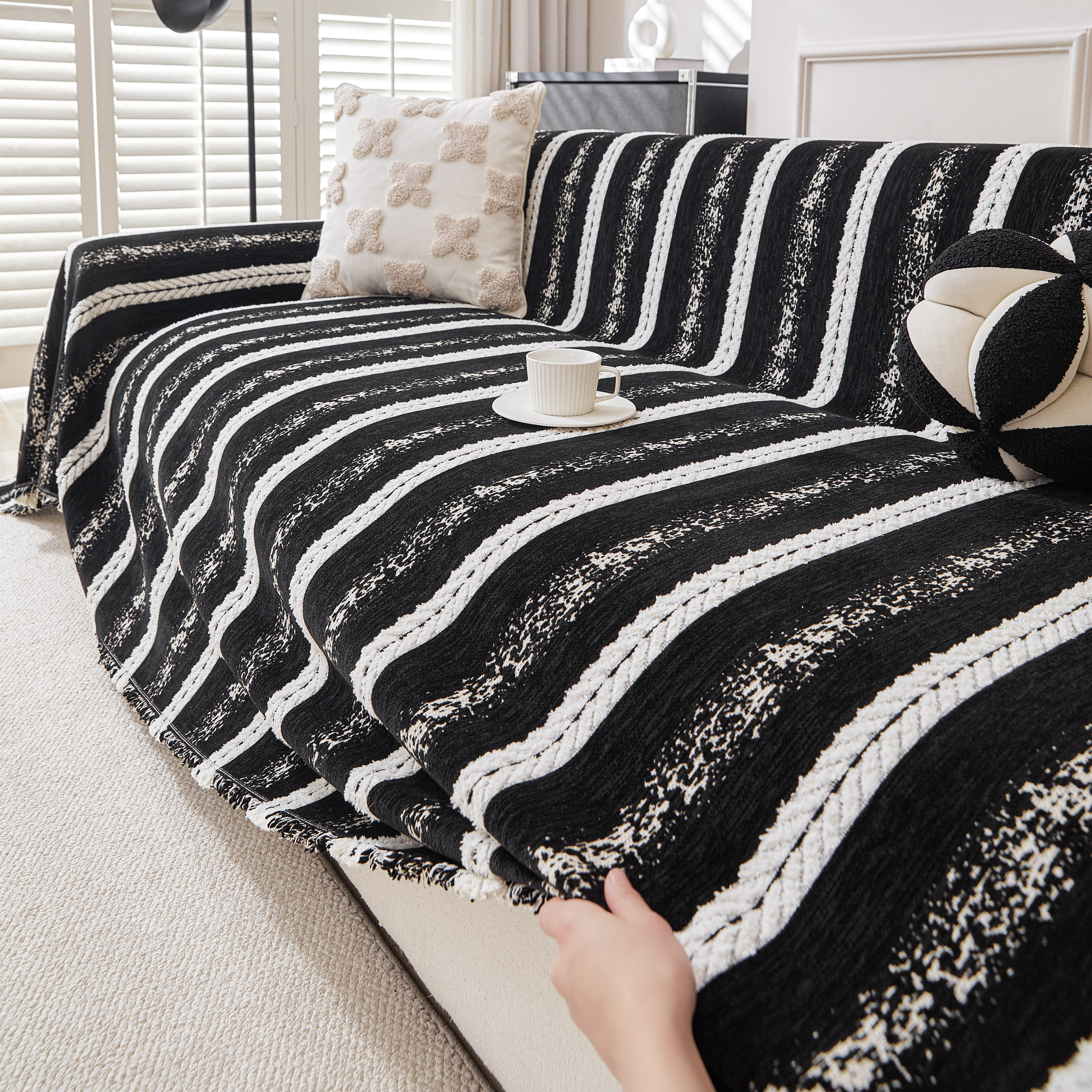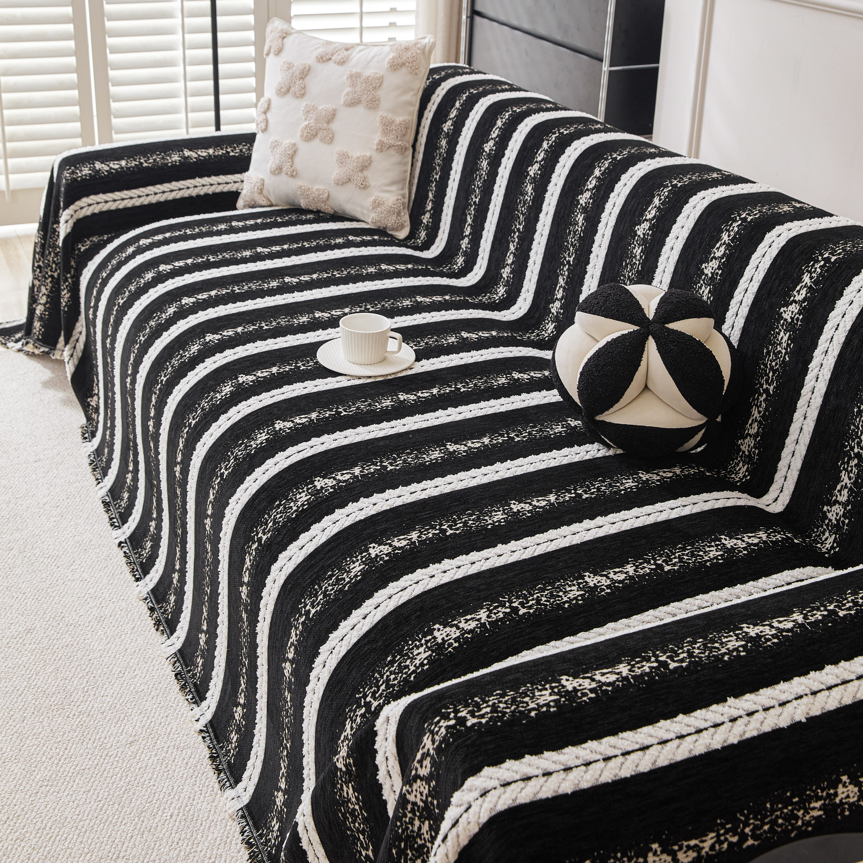 当前位置: 91家纺网 > 商品网购 > 居家布艺 > 坐垫/椅垫/沙发垫 > 沙发垫 > 逐日沙发套 2026新款加厚雪尼尔-沙发巾 织序流年-黑