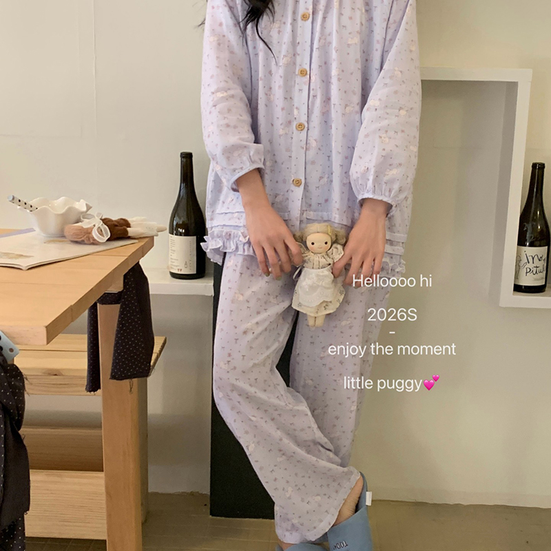 (总)妍景家居生活馆 2026新款针织棉 长袖碎花浅蓝家居服,针织棉 长袖碎花浅蓝