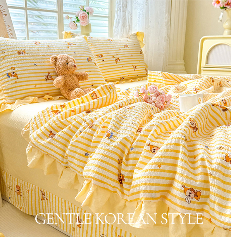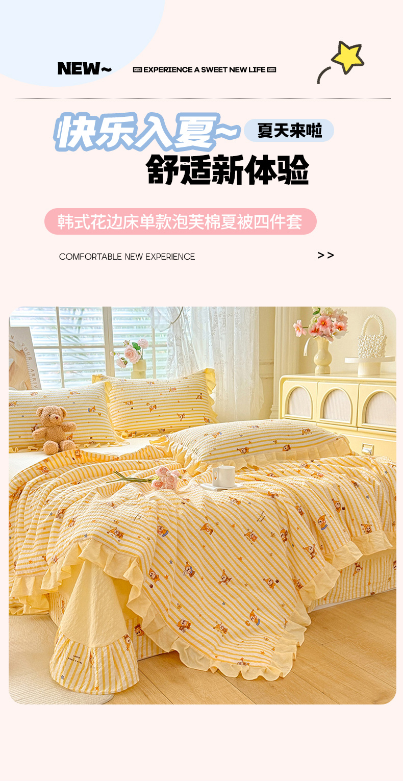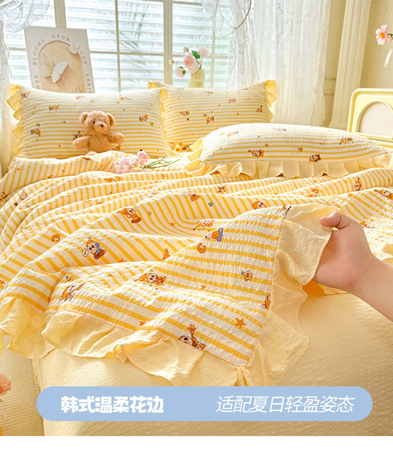 (总)韩约家纺 2026春夏新款韩式花边泡芙棉床单款夏被夏凉被空调被四件套