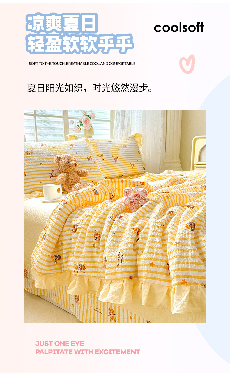 (总)韩约家纺 2026春夏新款泡芙棉床单款夏被夏凉被空调被四件套,仟香,宝贝甜心,春旭,蝶语,繁花,花沐,绿意,木槿,妮可,星语,熊宝,倚梦