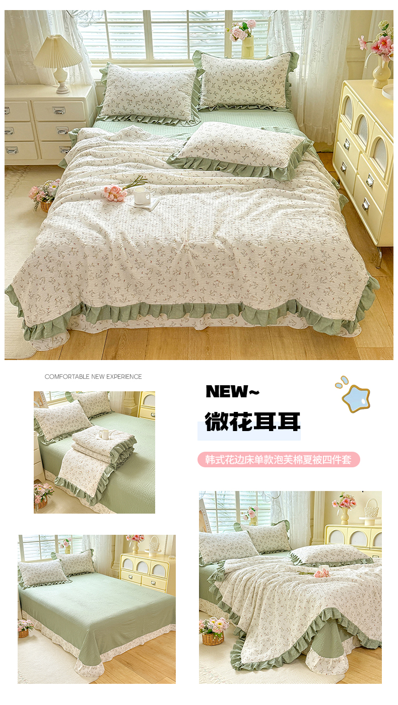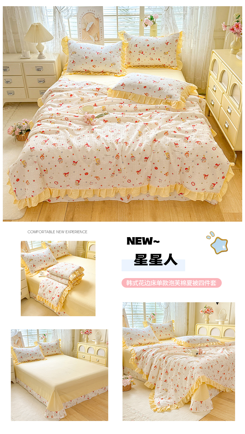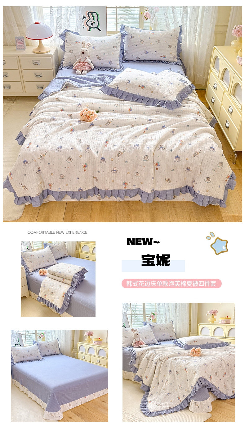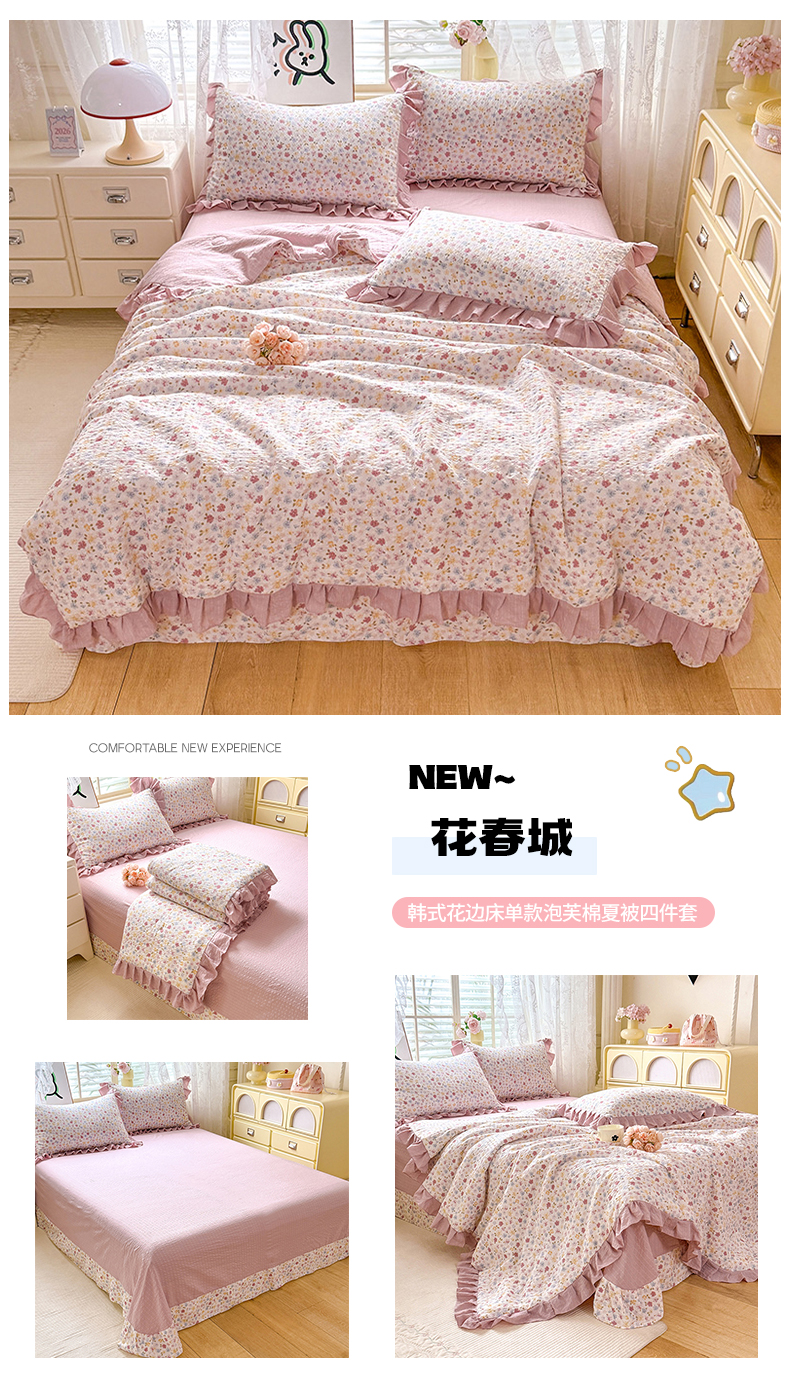• 91家纺网 家纺一手货源 找家纺 (总)韩约家纺 2026新款法式大花边床盖款泡芙棉夏凉被空调被四件套,倚梦,宝贝甜心,春旭,蝶语,繁花,花沐,绿意,木槿,妮可,仟香,星语,熊宝