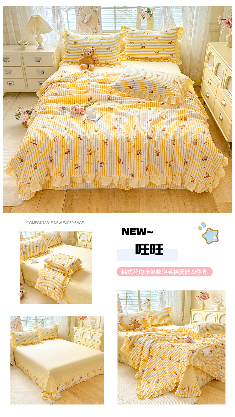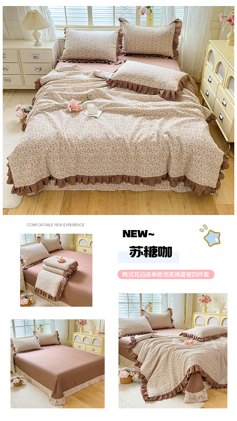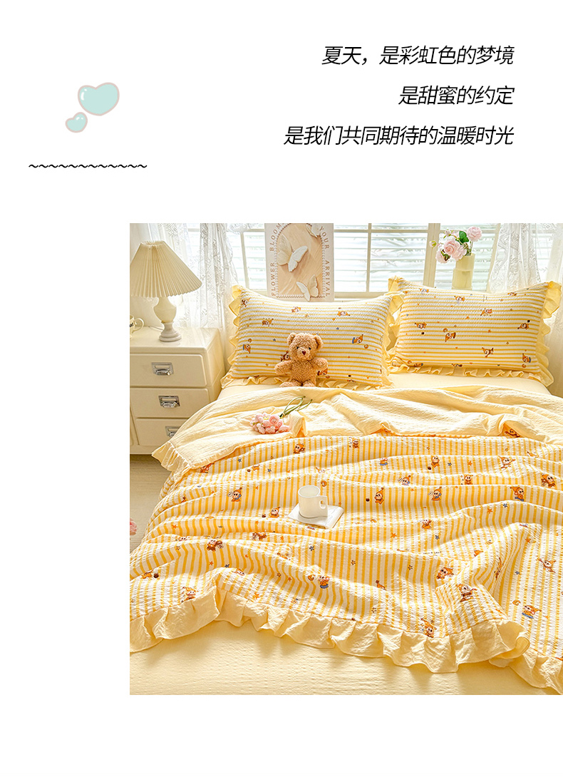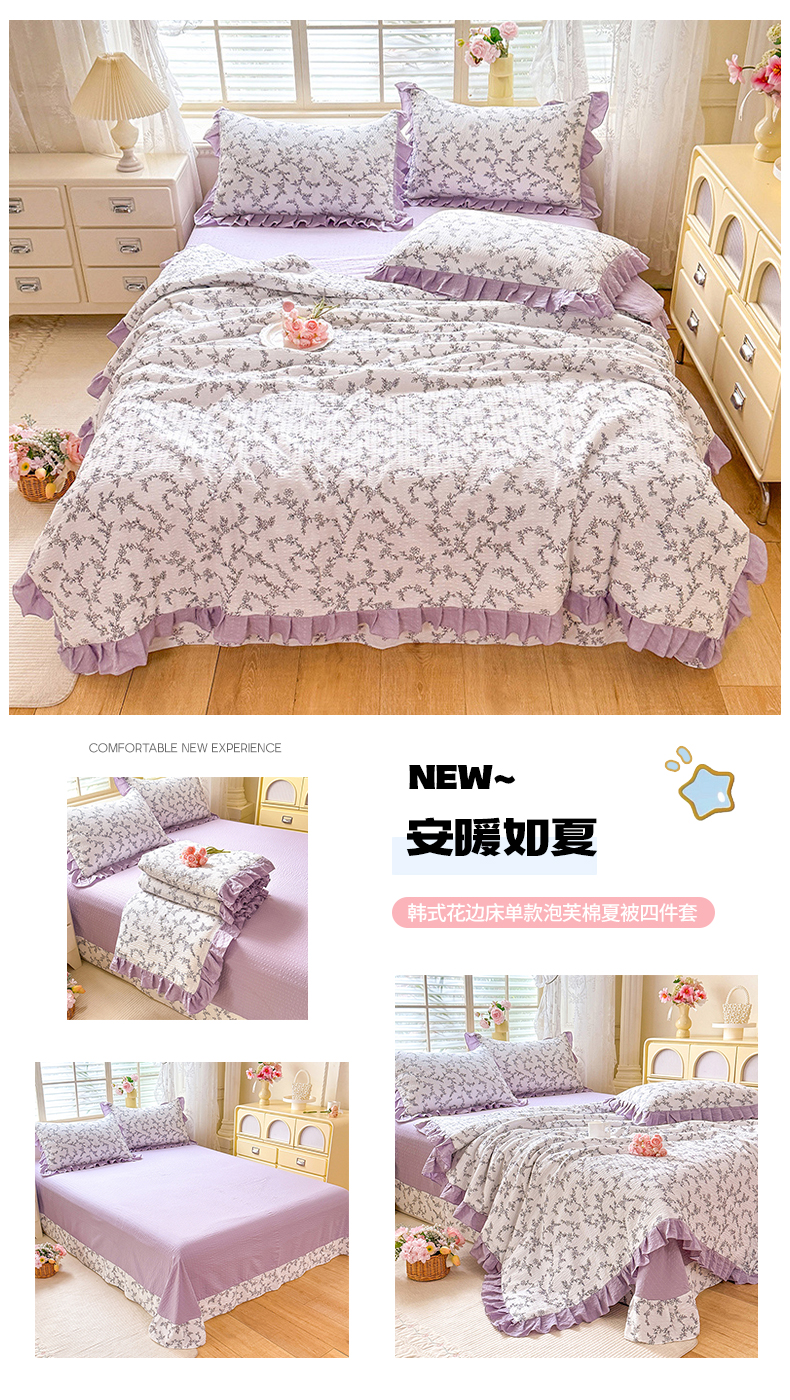 • 91家纺网 家纺一手货源 找家纺 (总)韩约家纺 2026新款法式大花边床盖款泡芙棉夏凉被空调被四件套,倚梦,宝贝甜心,春旭,蝶语,繁花,花沐,绿意,木槿,妮可,仟香,星语,熊宝