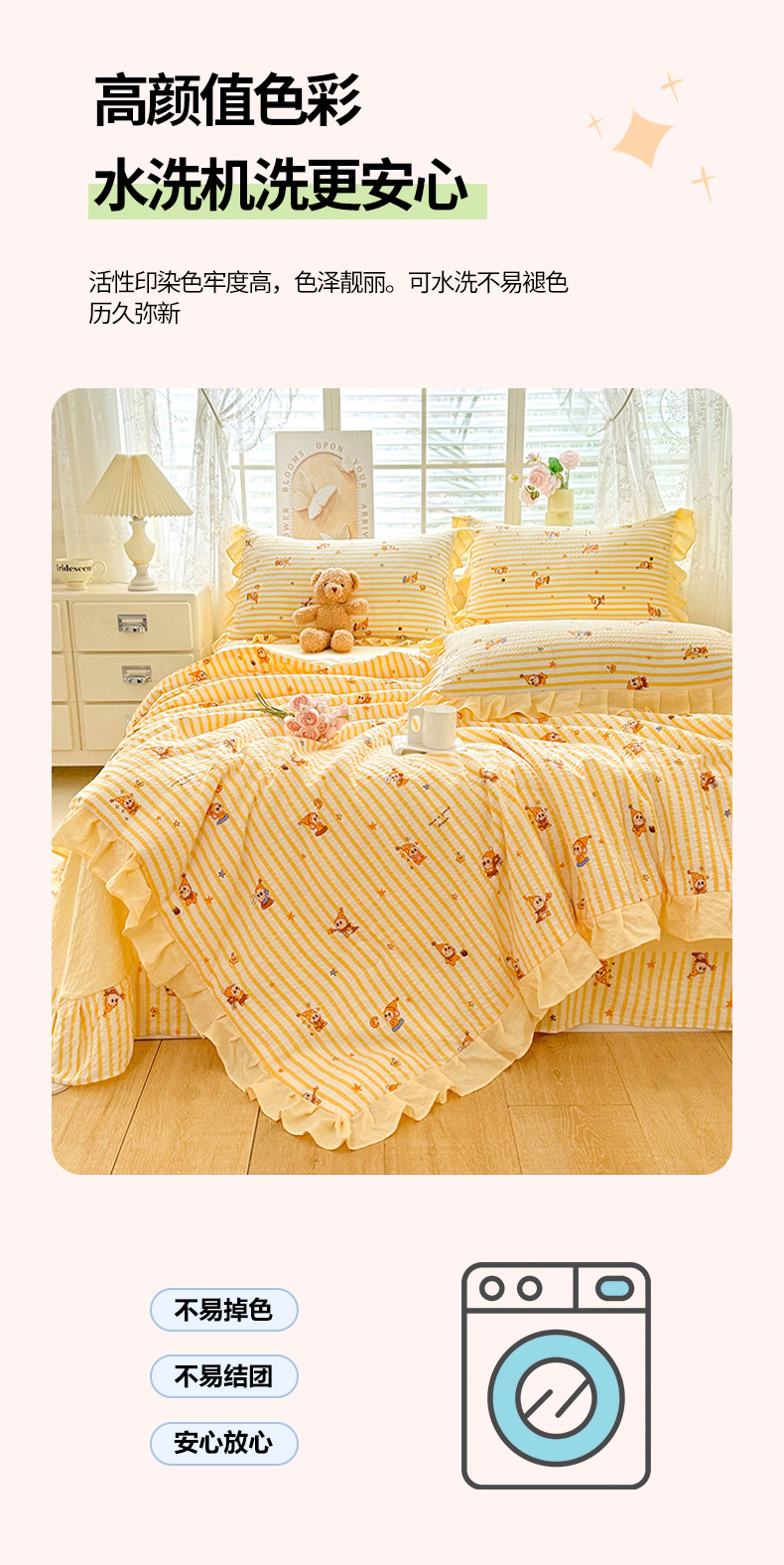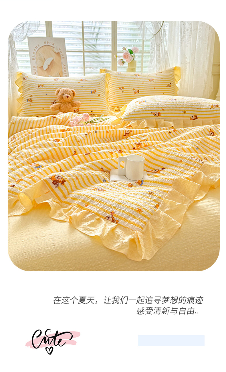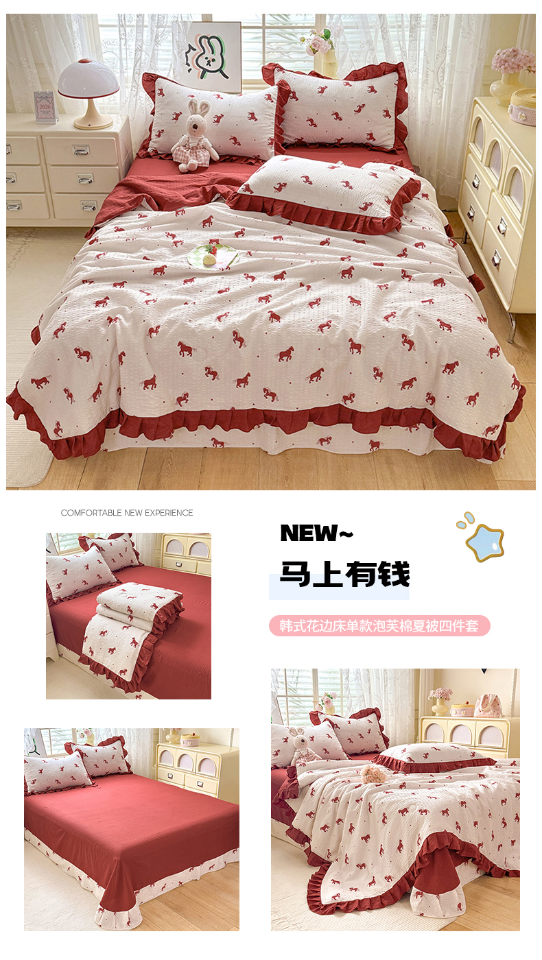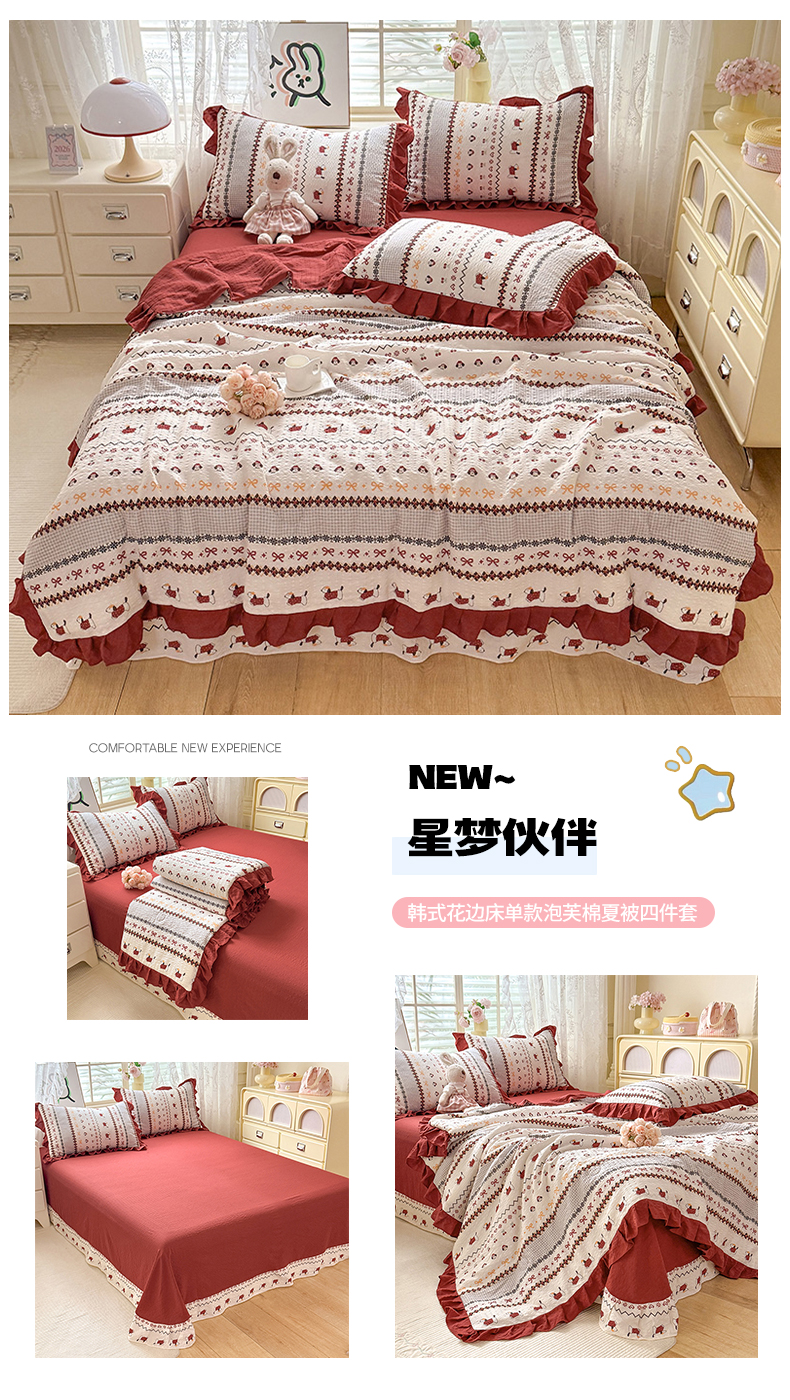 • 91家纺网 家纺一手货源 找家纺 (总)韩约家纺 2026新款法式大花边床盖款泡芙棉夏凉被空调被四件套,倚梦,宝贝甜心,春旭,蝶语,繁花,花沐,绿意,木槿,妮可,仟香,星语,熊宝