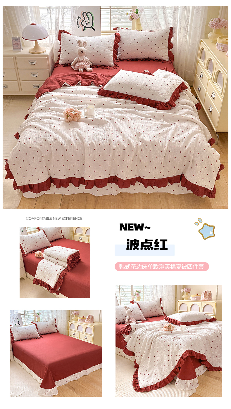 • 91家纺网 家纺一手货源 找家纺 (总)韩约家纺 2026新款泡芙棉床盖款夏被夏凉被空调被四件套,安暖如夏,宝妮,波点红,花春城,马上有钱,奶油泡芙,苏糖咖,旺旺,微花耳耳,星梦伙伴,星星人,紫色心情