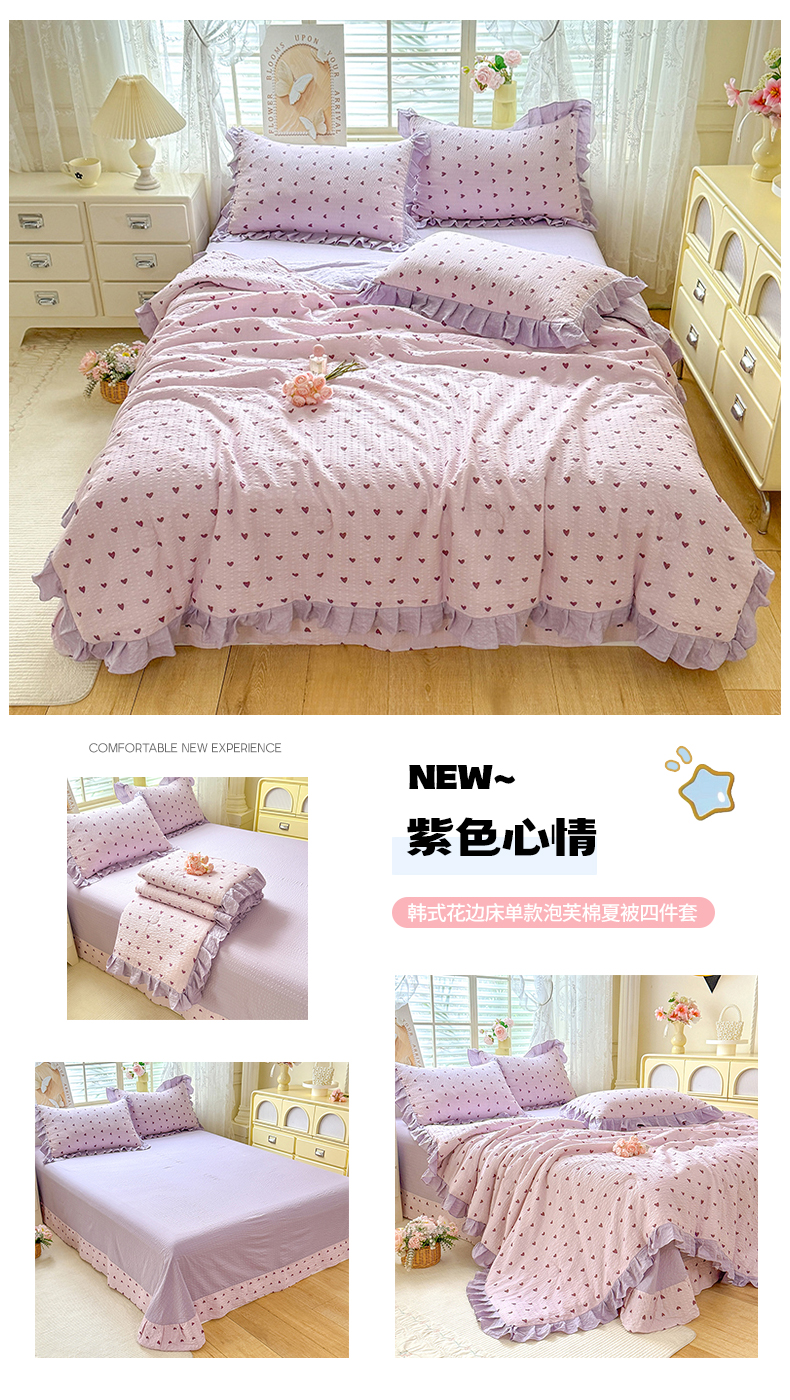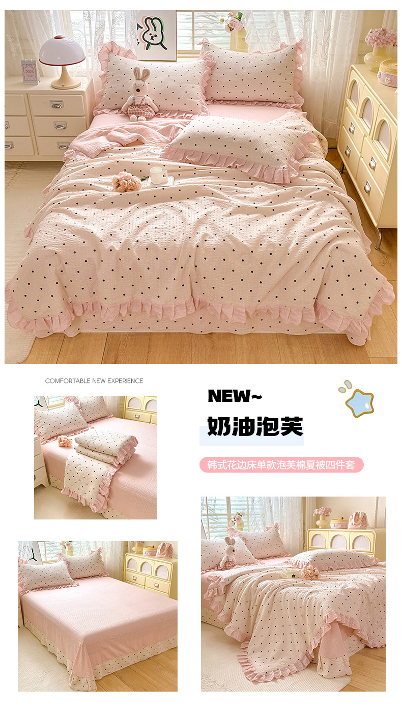 • 91家纺网 家纺一手货源 找家纺 (总)韩约家纺 2026春夏新款韩式花边泡芙棉床单款夏被夏凉被空调被四件套