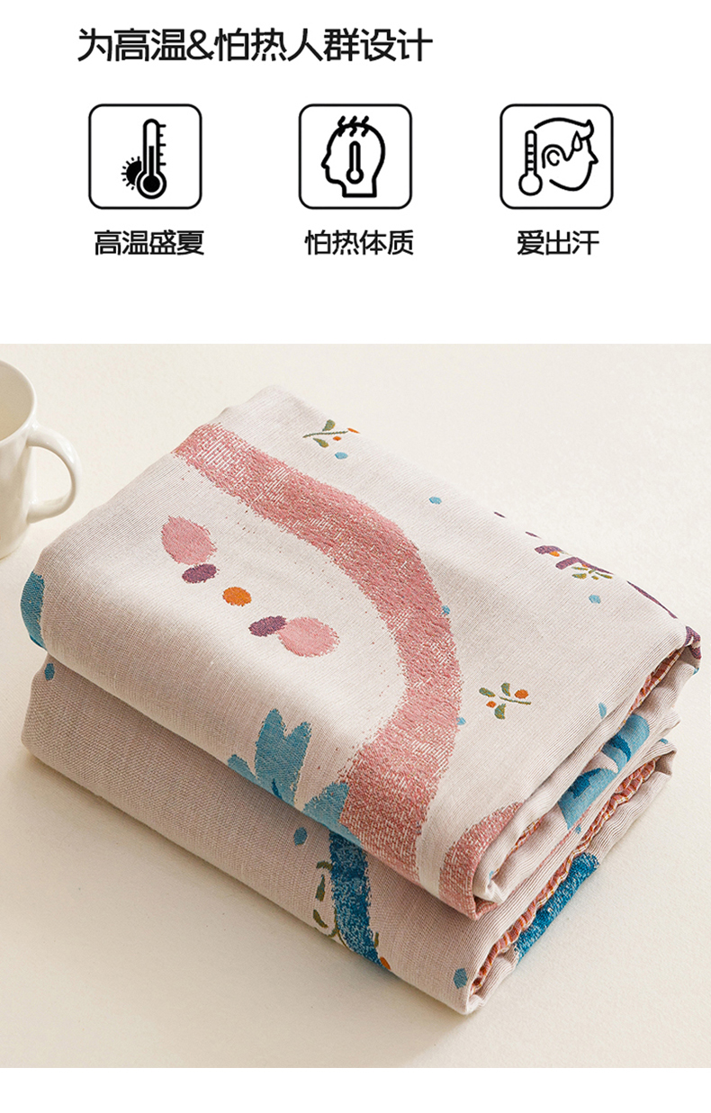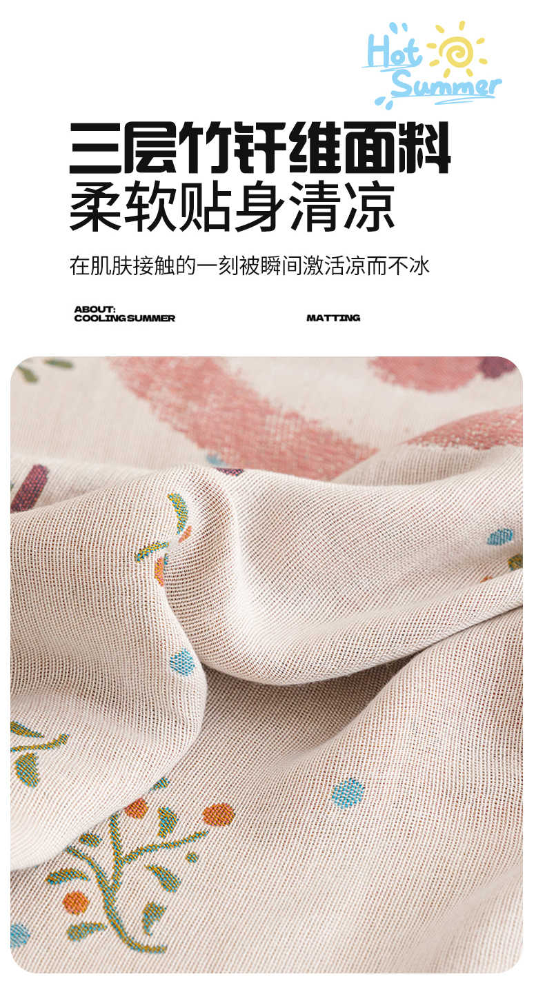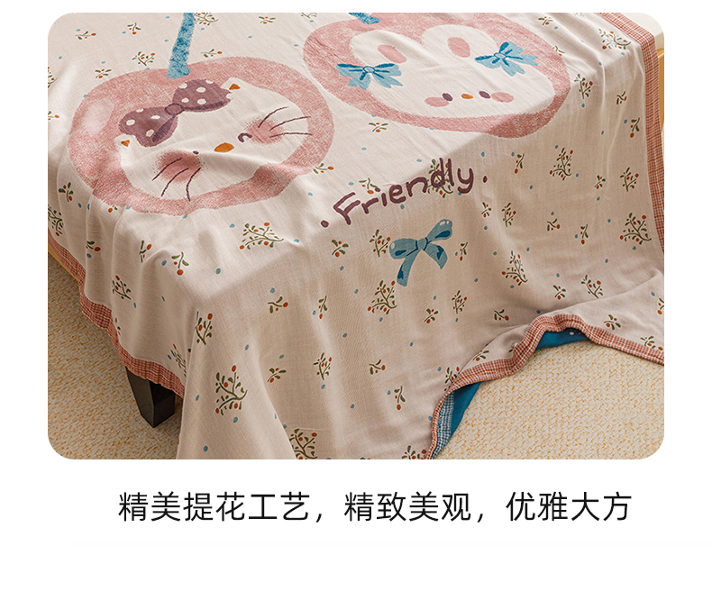 商品名称:悦然毛巾被 2026春夏新款三层竹纤维冷感毯休闲儿童毯成人毛巾被 花下萌猫