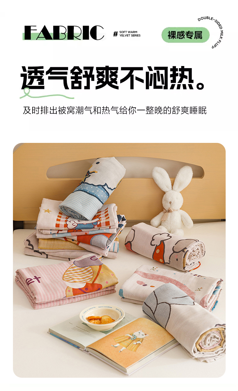 (总)悦然毛巾被 2026春夏新款三层竹纤维冷感毯休闲儿童毯成人毛巾被,粉糖小兔,花下萌猫,森林小伙伴,甜心猫团,挖挖乐,汪汪小星,小时光,小象日记,阳光车长,组合图仅供展示不可下单