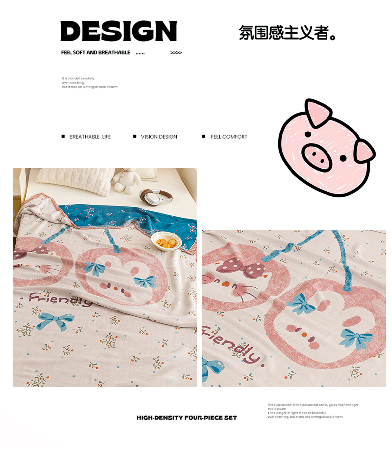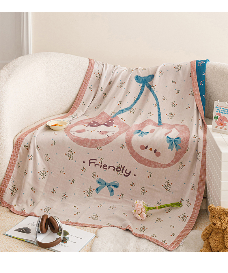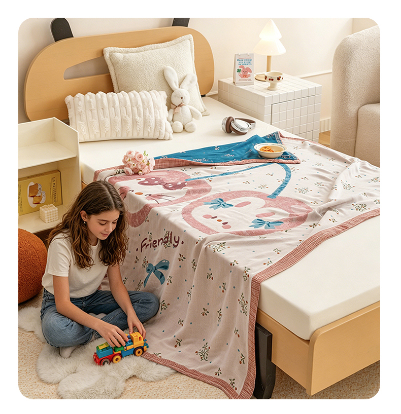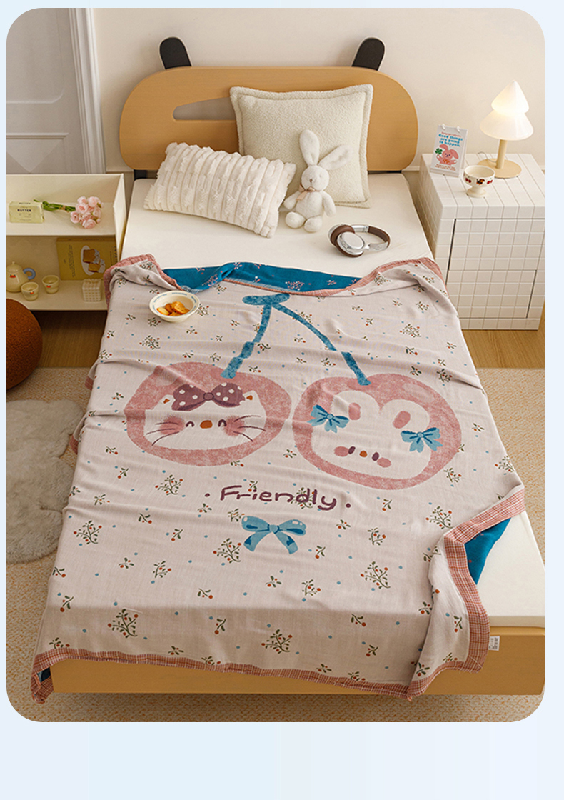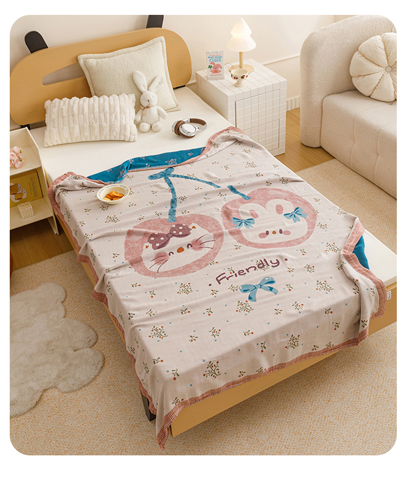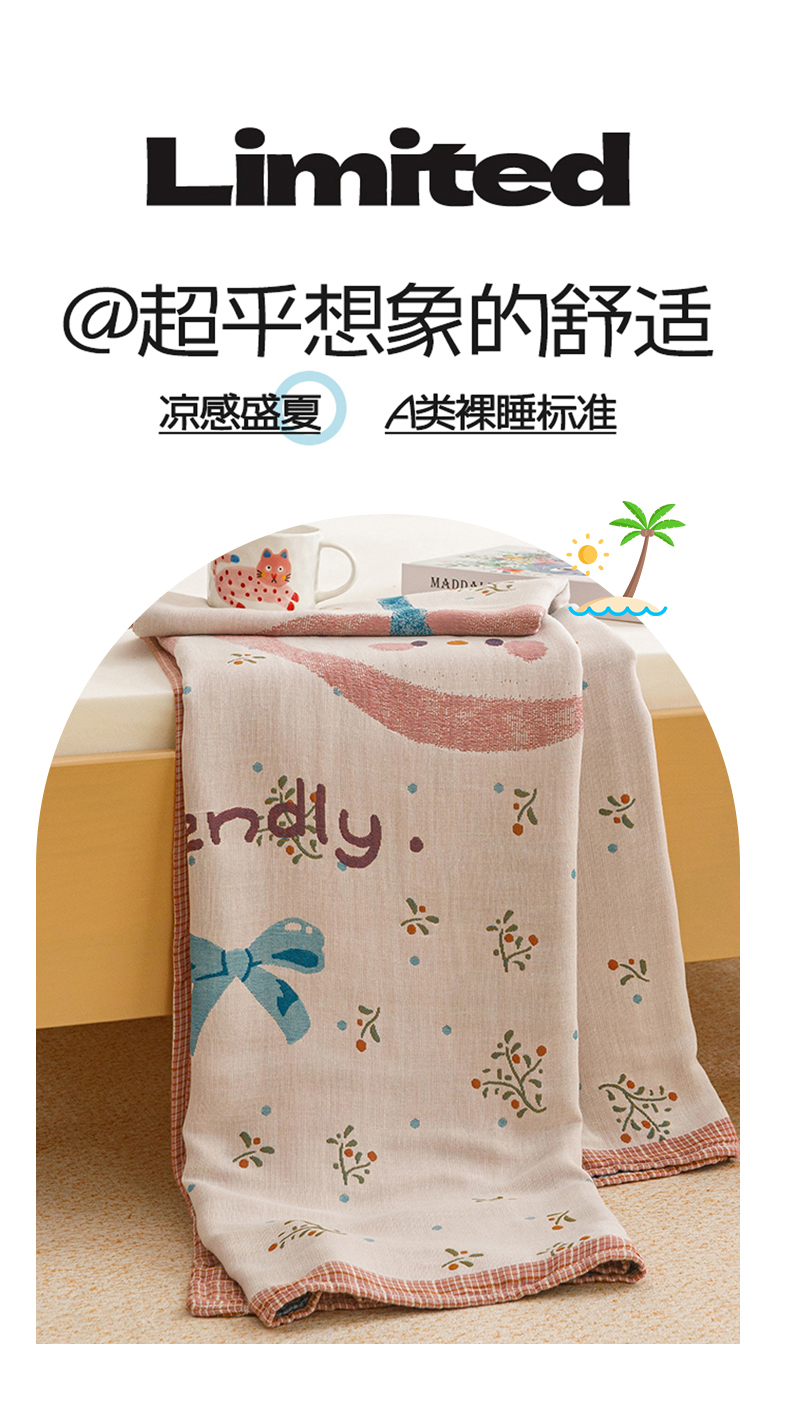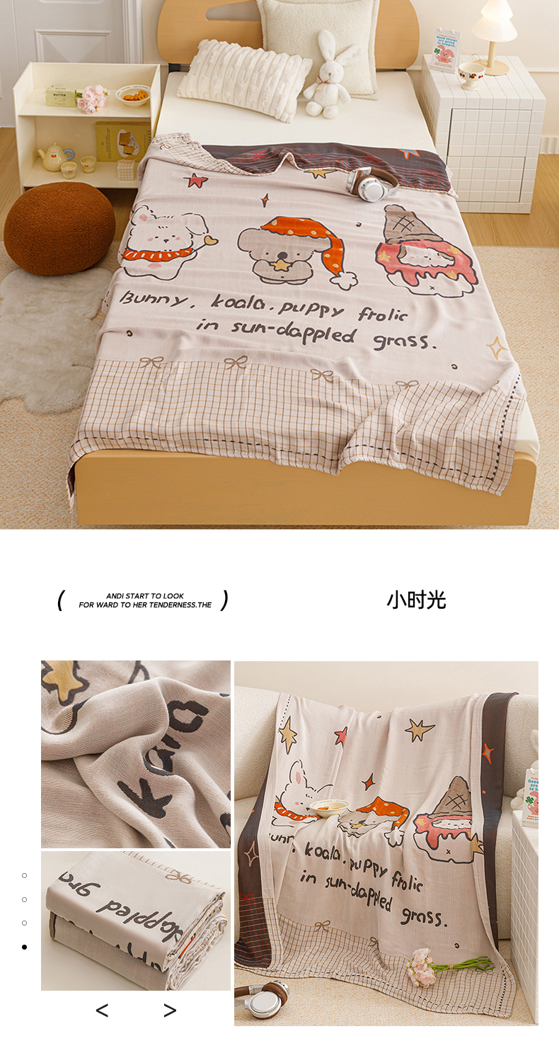 (总)悦然毛巾被 2026新款全棉纯棉三层纱布夏被毛巾被盖毯休闲色织提花卡通,暧企格语,暧运瑞猫,绿动全城,甜心兔,元气熊,组合图仅供展示不可下单