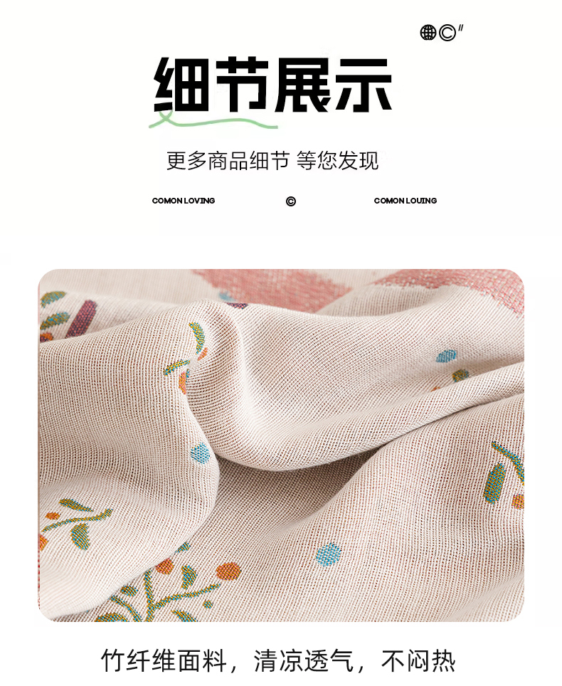 (总)悦然毛巾被 2026新款竹纤维冷感毯单层毛巾被夏被空调被斜纹提花叶子卡通,甜心兔粉,甜心兔蓝,甜心兔绿,甜心兔银,竹间花粉,竹间花蓝,竹间花绿,竹间花银