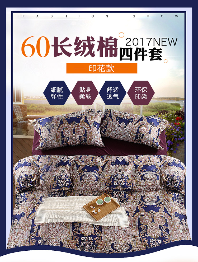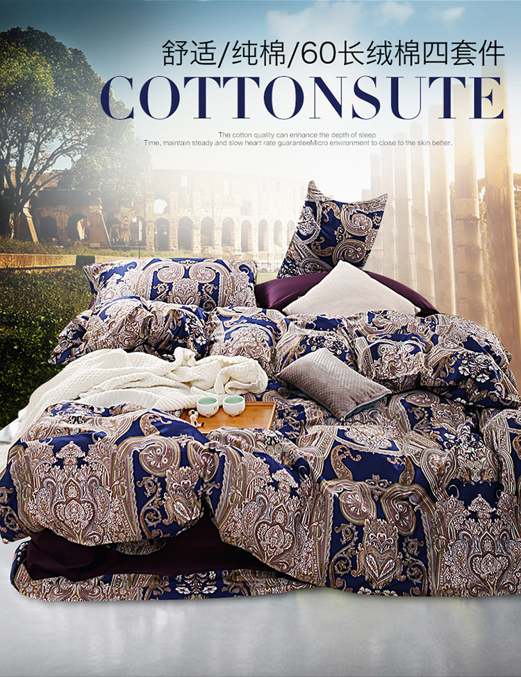 当前位置: 91家纺网 > 商品网购 > 床品套件 > 四件套 > 长绒棉四件套 > 太古汇家居 60长绒棉(印花)四件套 莫妮卡TGH007