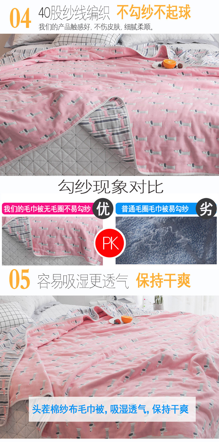 商品名称:朴尔家纺 夏季毛巾被纯棉毛毯被夏被毯子空调被宠物狗-粉