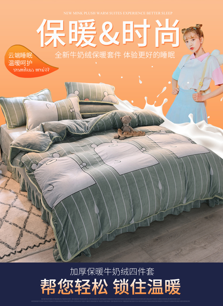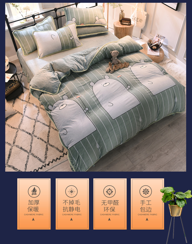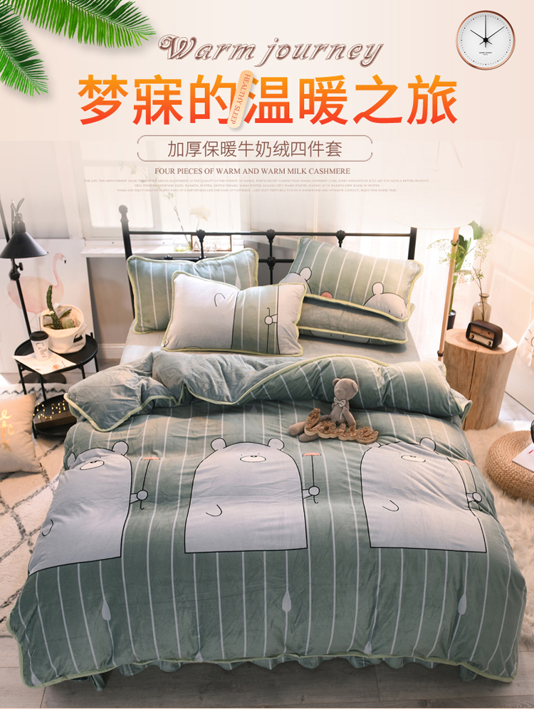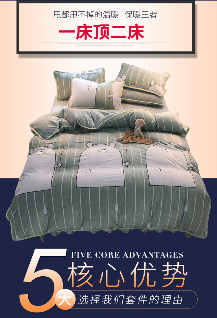 商品名称:绒世界 2018秋冬印花牛奶绒爆款四件套第二版 小雨伞