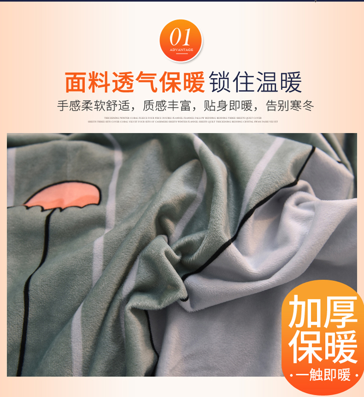 绒世界 2018秋冬印花牛奶绒爆款四件套第二版 小雨伞