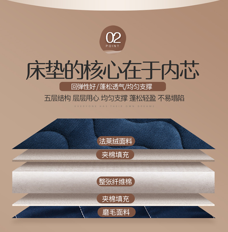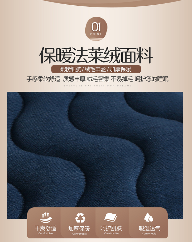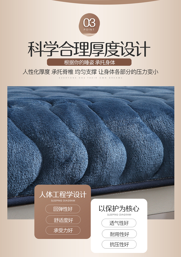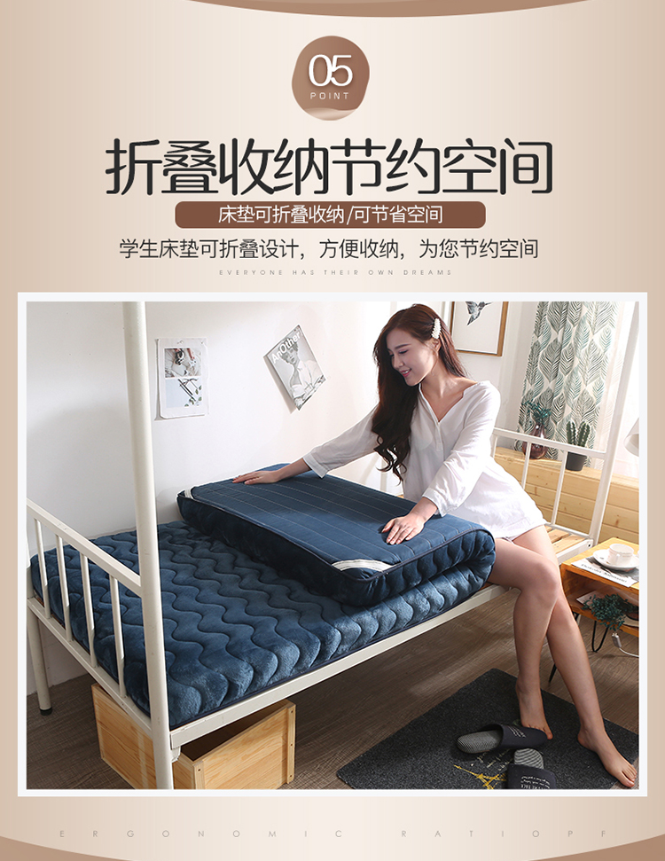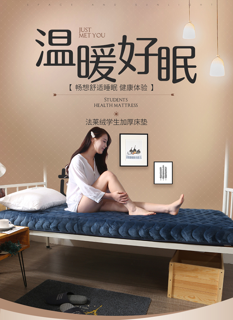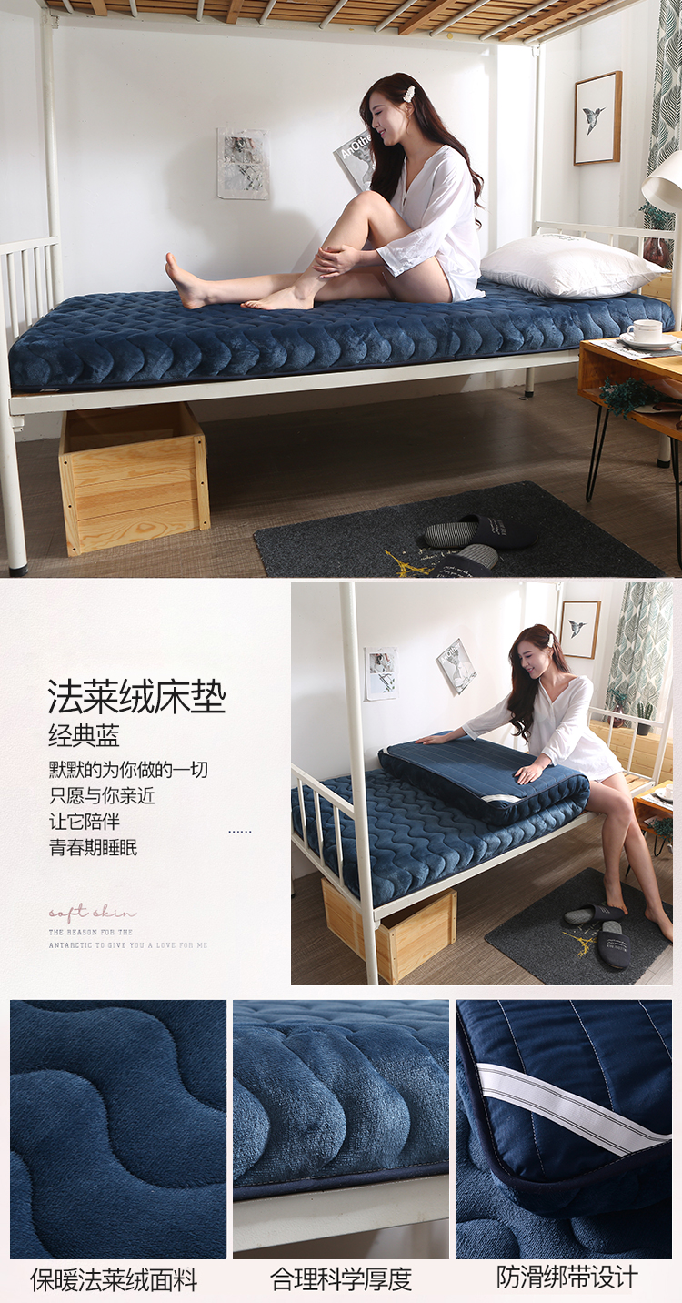 商品名称:欣罗兰 2022新款单边学生法莱绒床垫 经典蓝