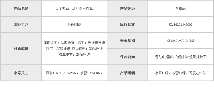 商品名称:2024年婴幼儿立体冰丝席三件套幼儿园专用宝宝凉席透气午睡席