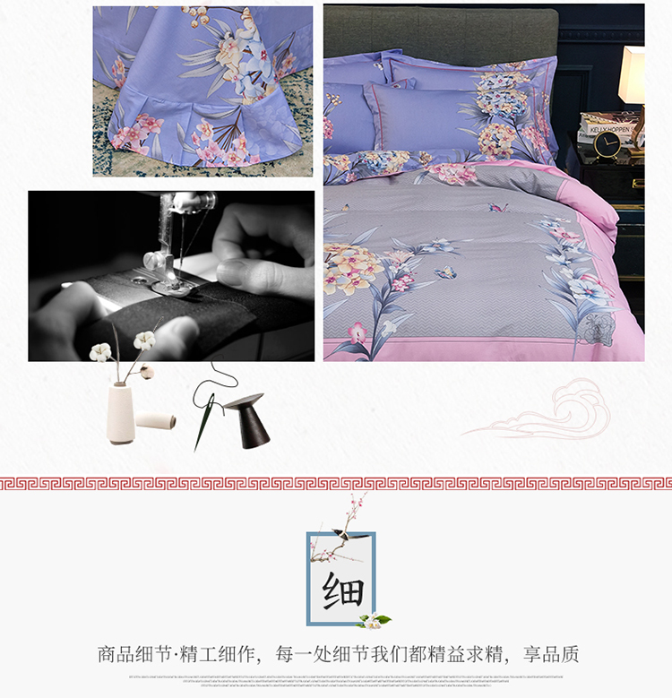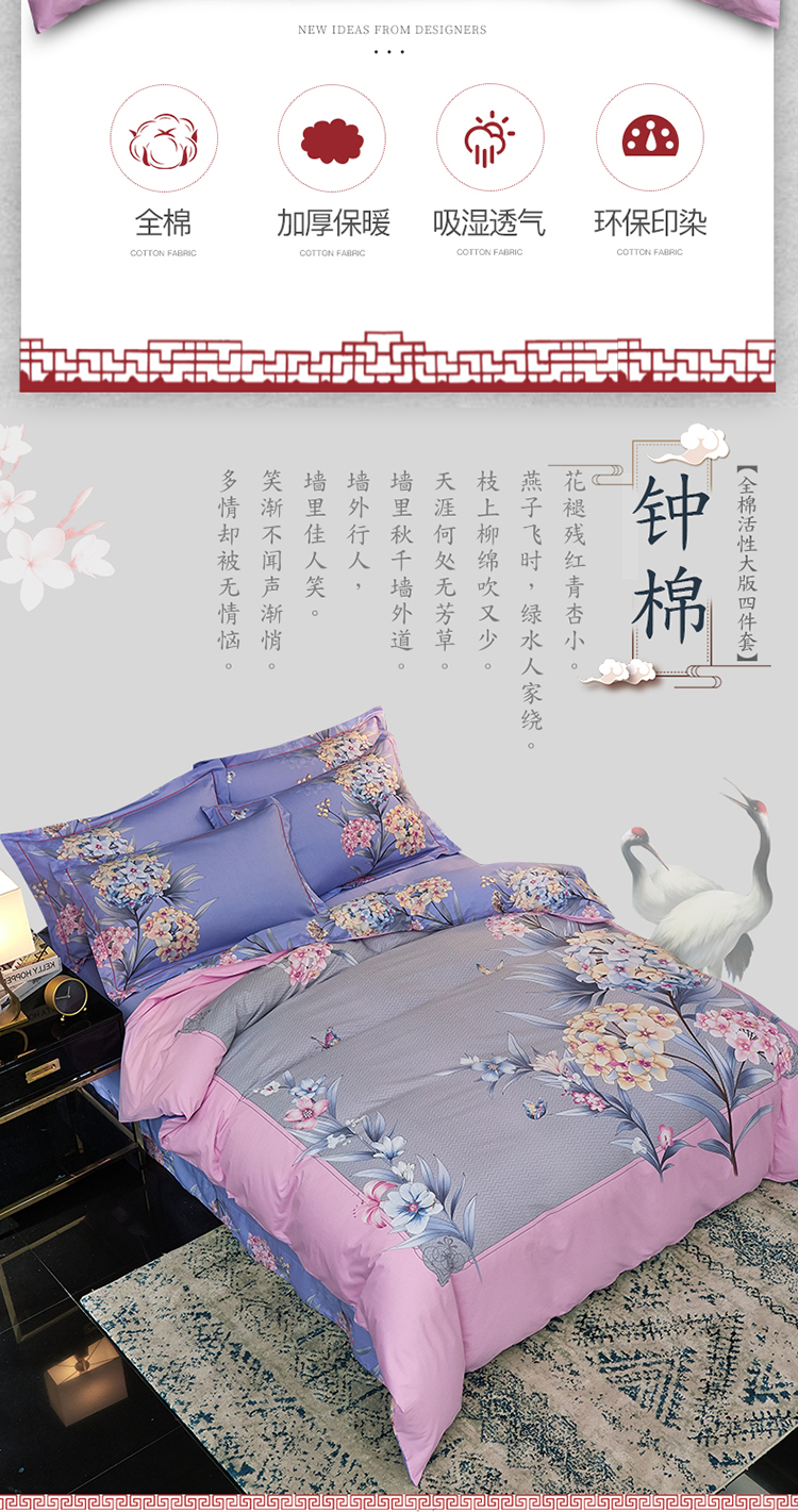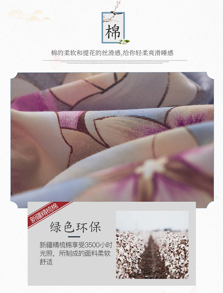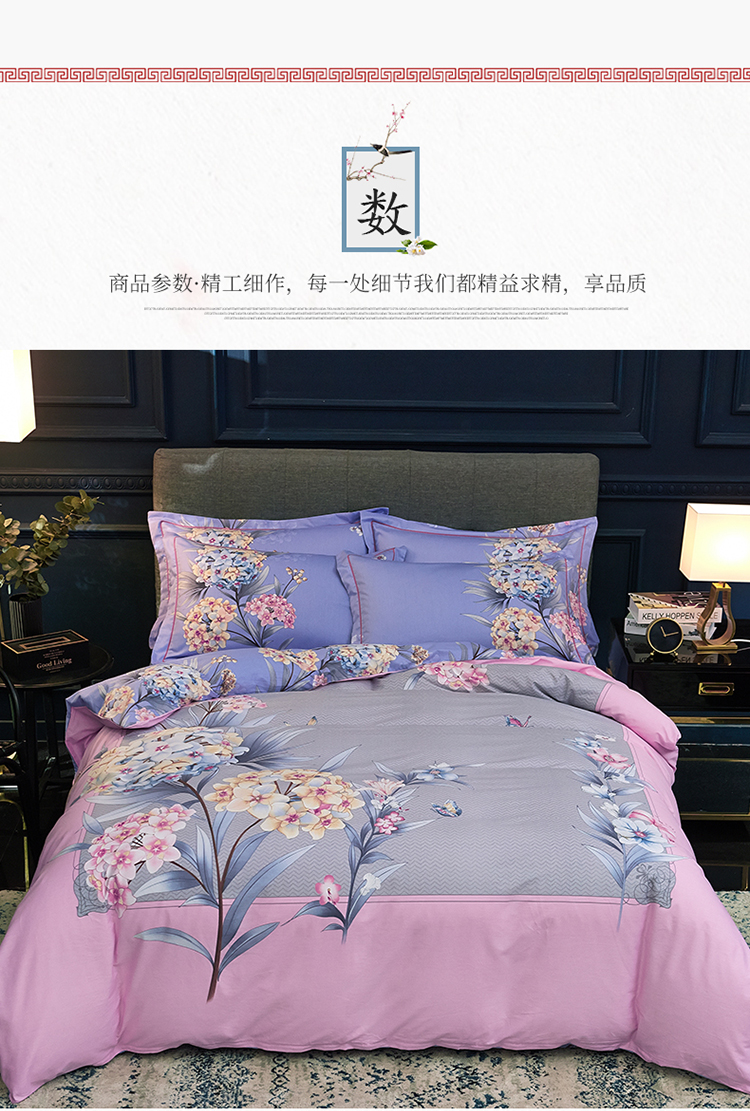 商品名称:雲归梦家纺2019新款13372全棉活性大版四件套静待花开粉