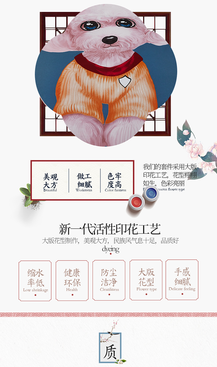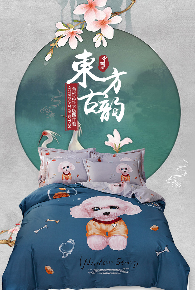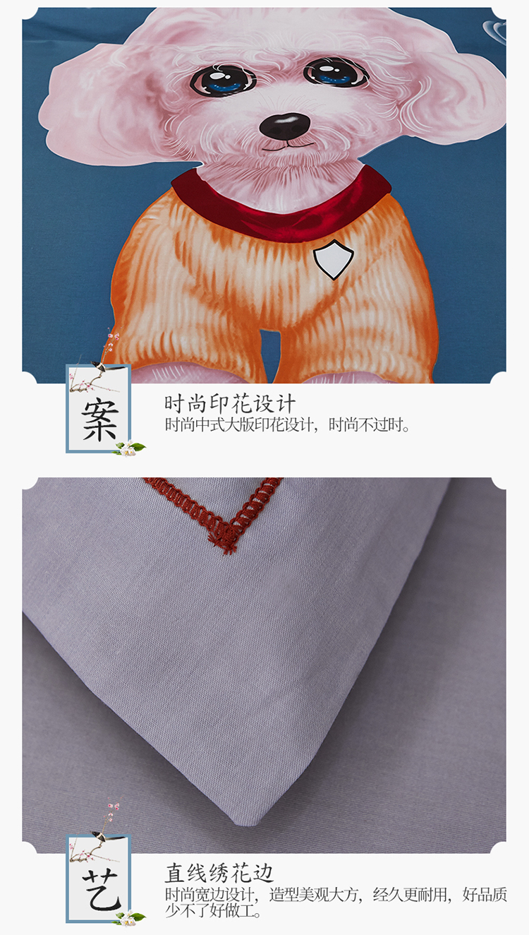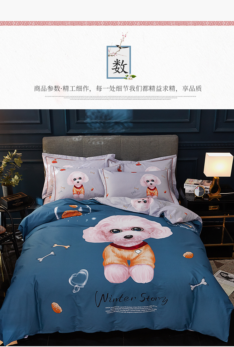商品名称:雲归梦家纺 2019新款13372全棉活性大版四件套 萌犬蓝