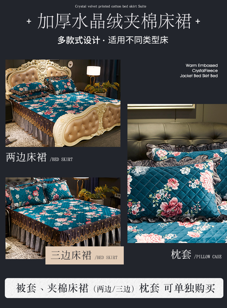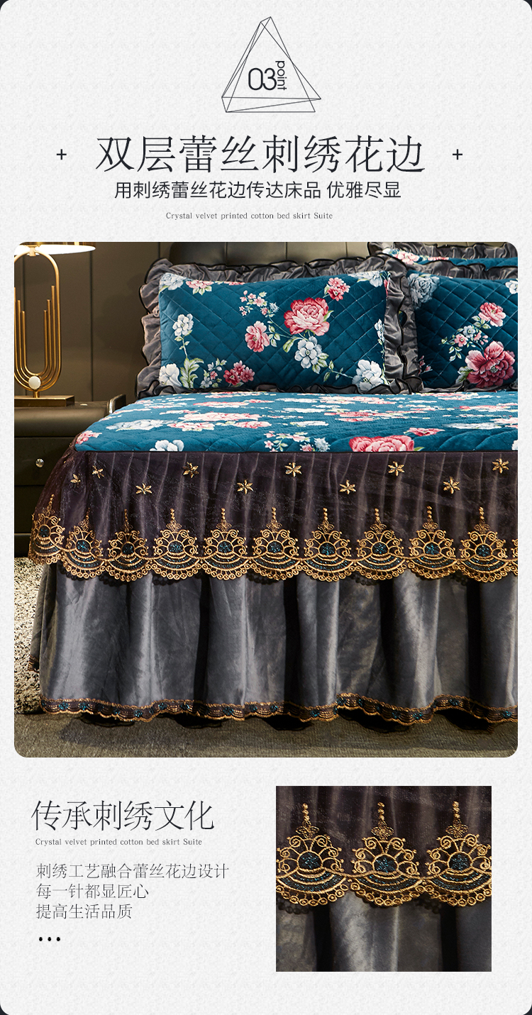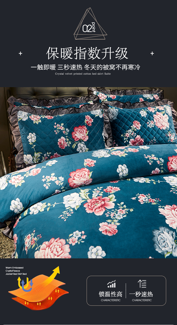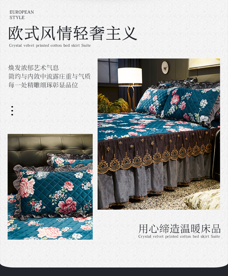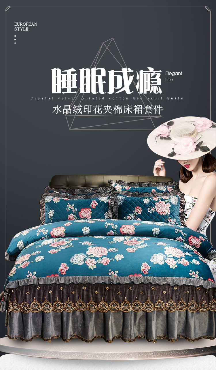 宜凡家纺 2019新款水晶绒印花系列床裙四件套 华似锦