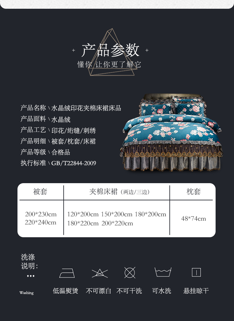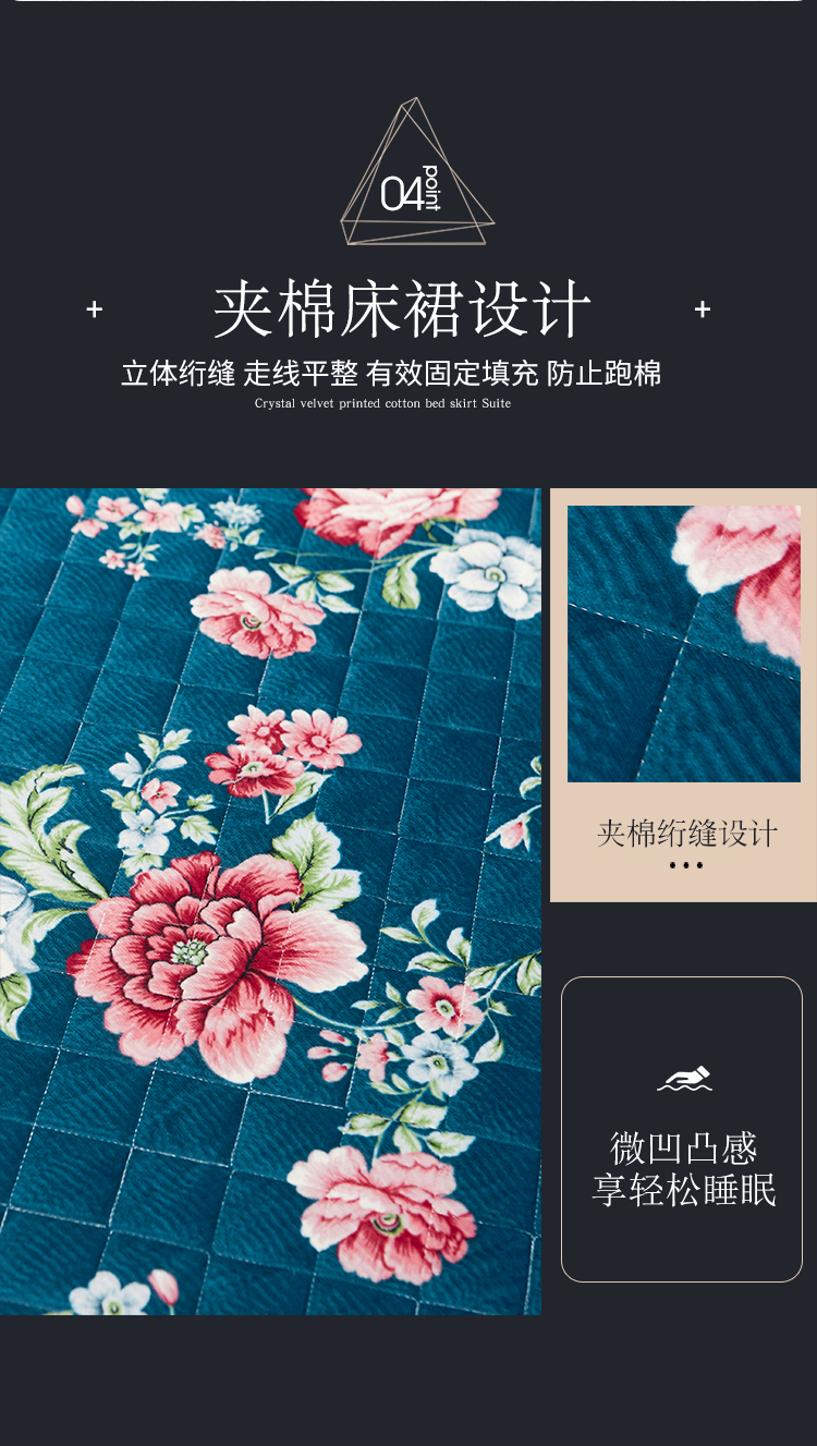 商品名称:宜凡家纺 2019新款水晶绒印花系列床裙四件套 华似锦