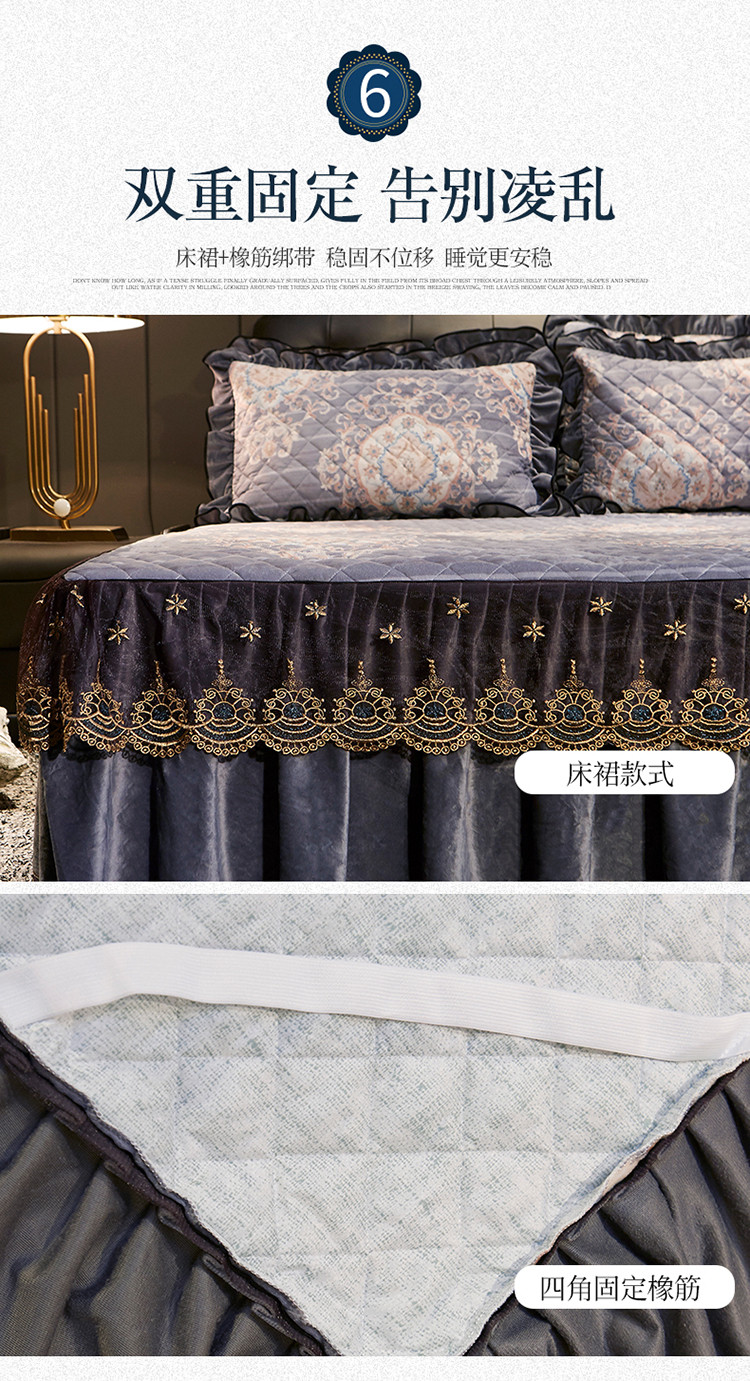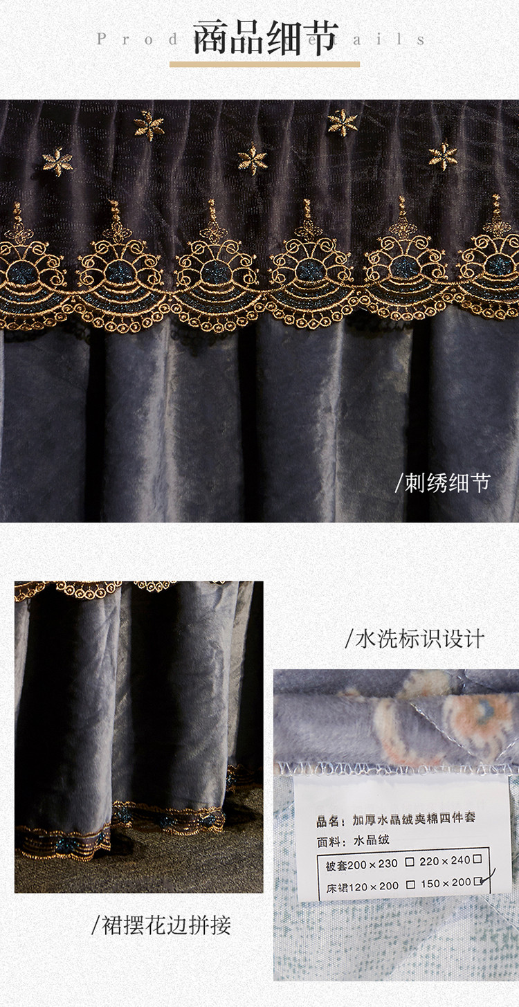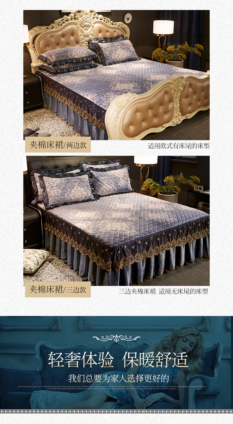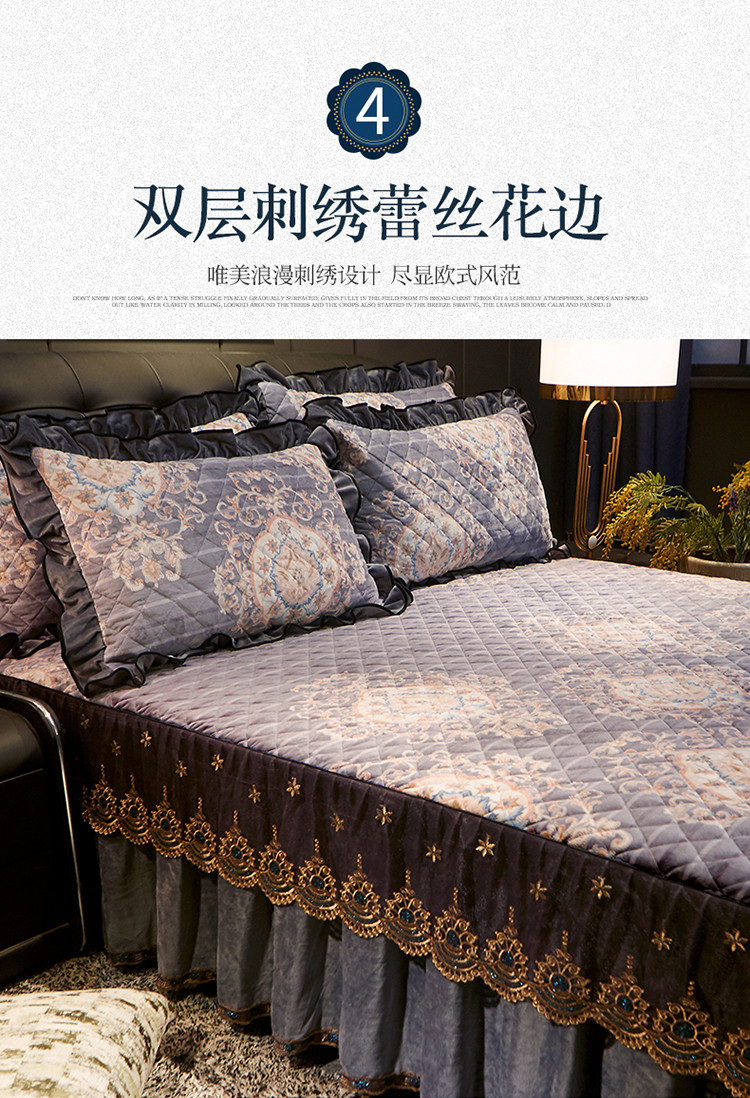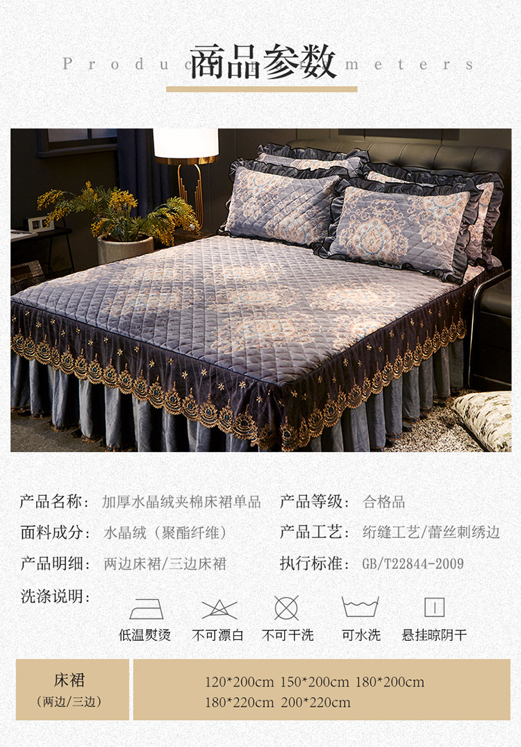 商品名称:宜凡家纺 2019新款水晶绒印花系列单床裙三边 万顷琉璃