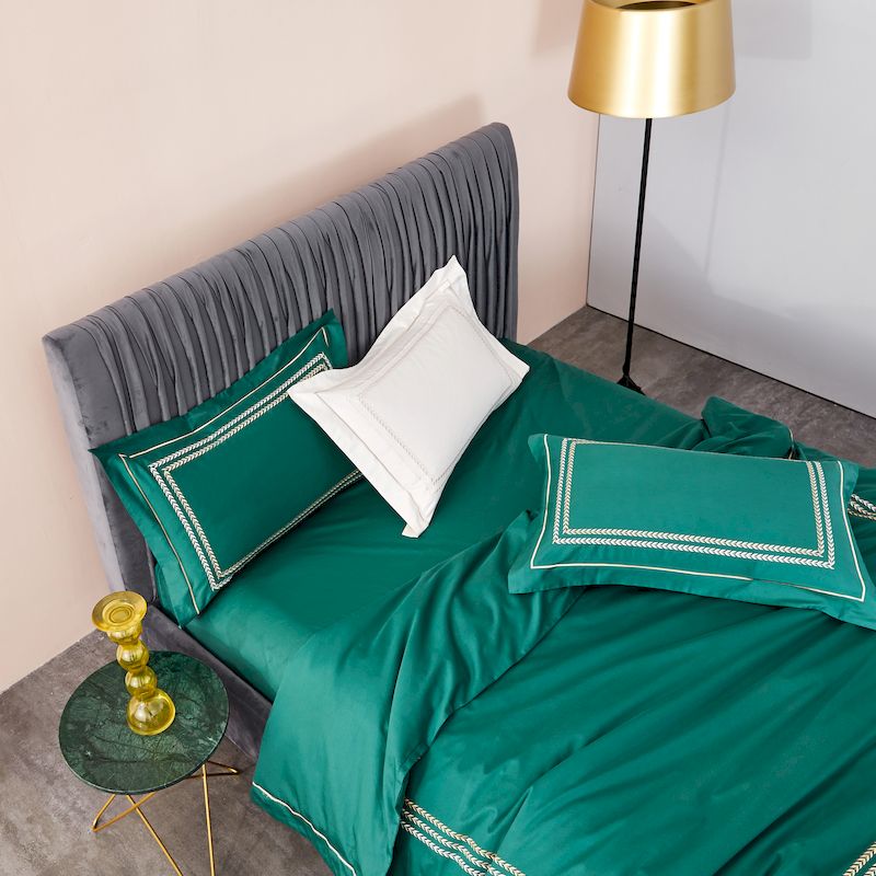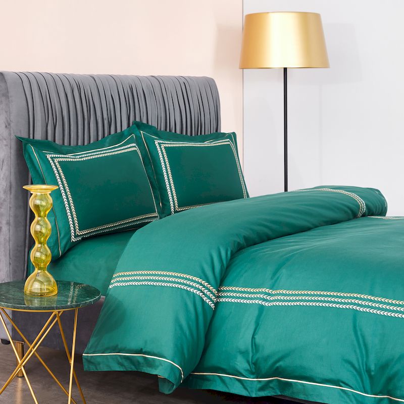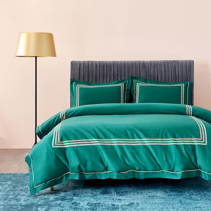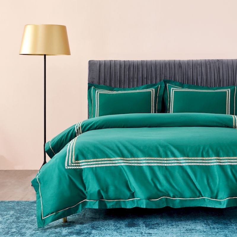 商品名称:涞澳 2019新款50套框绣花四件套 麦穗绿