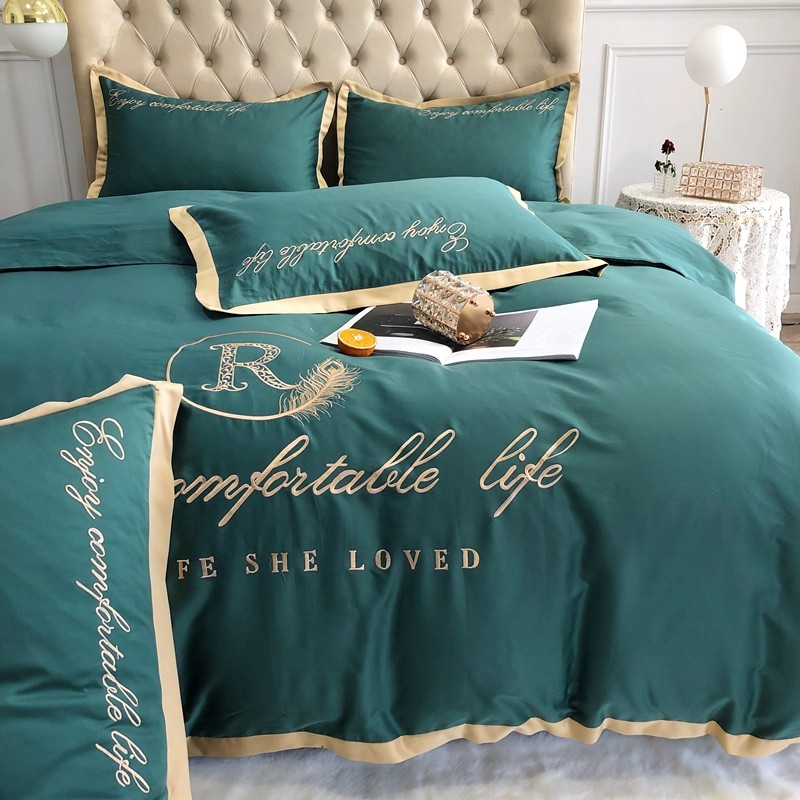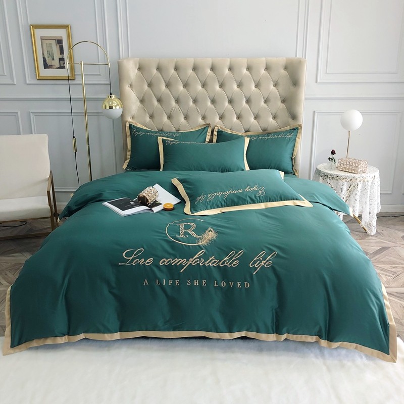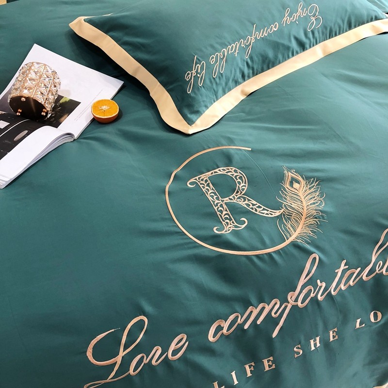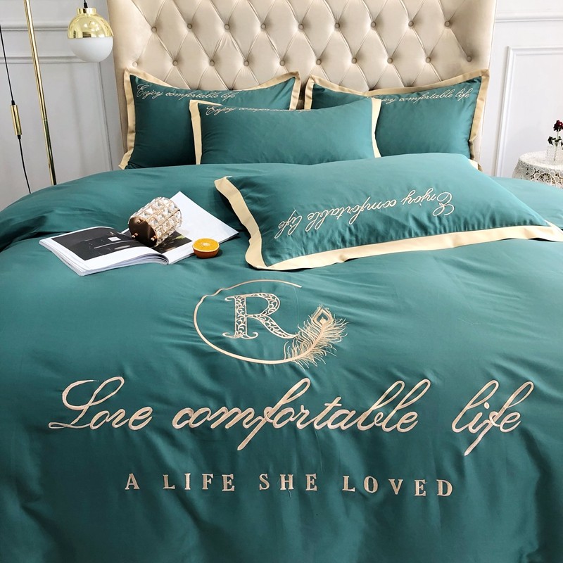 馨蕊家居 2021新款60长绒棉四件套简爱系列 简爱-松花绿