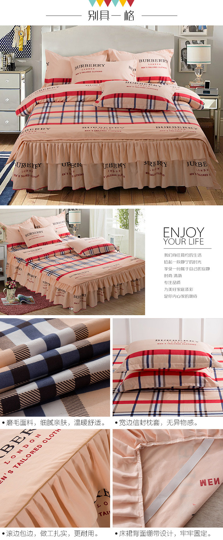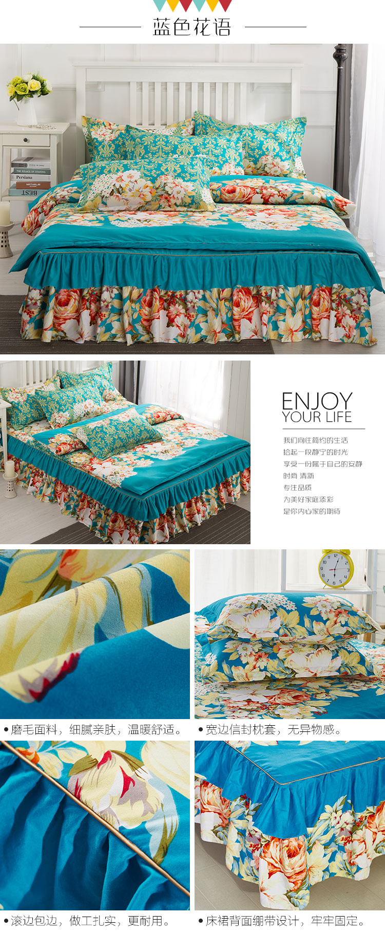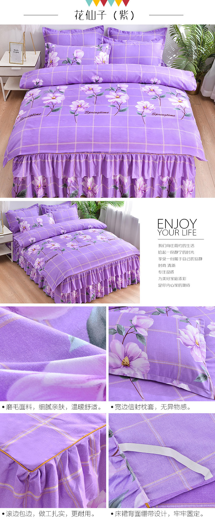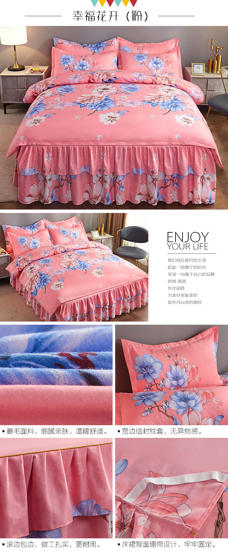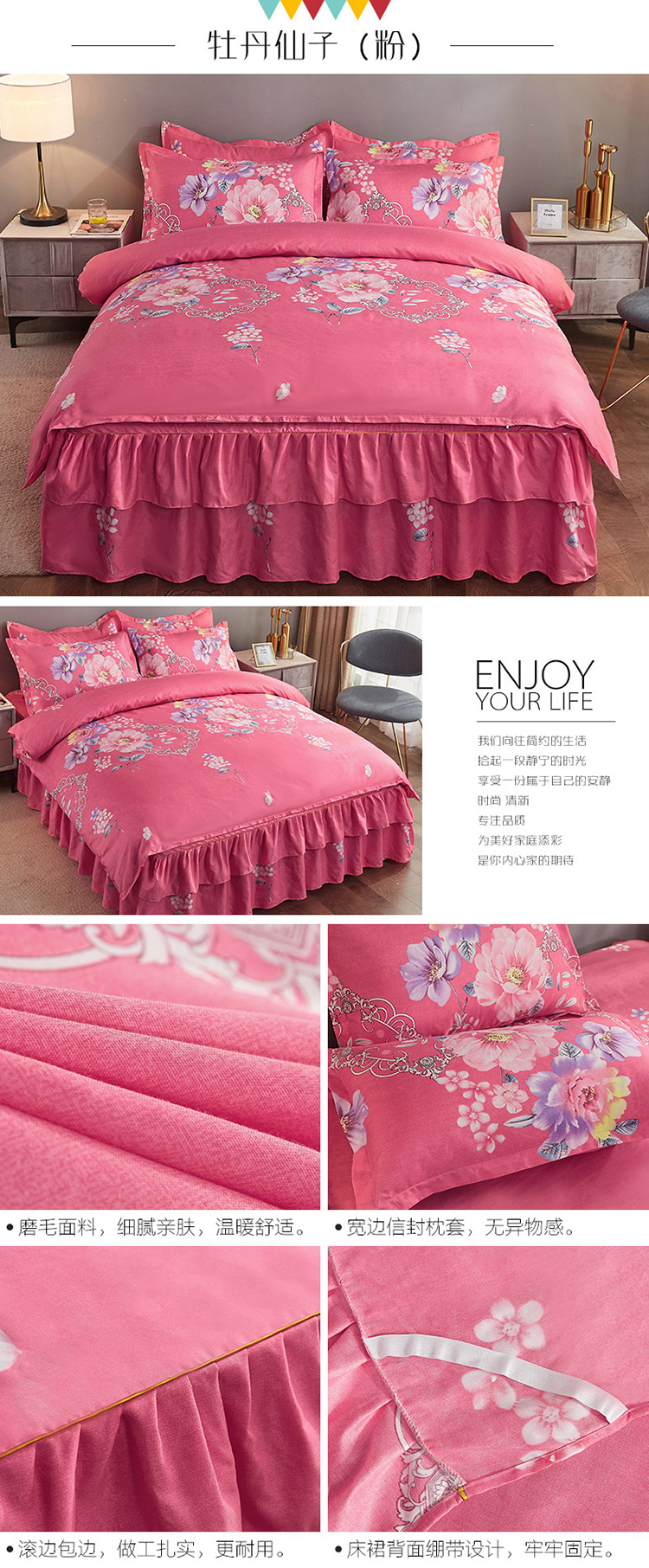 商品名称:梦柏 2020新款加厚磨毛四件套小版床裙款 爱的港湾-粉
