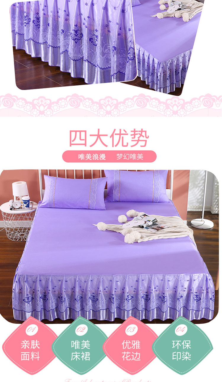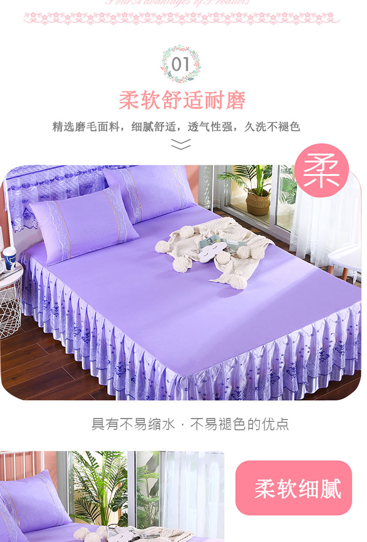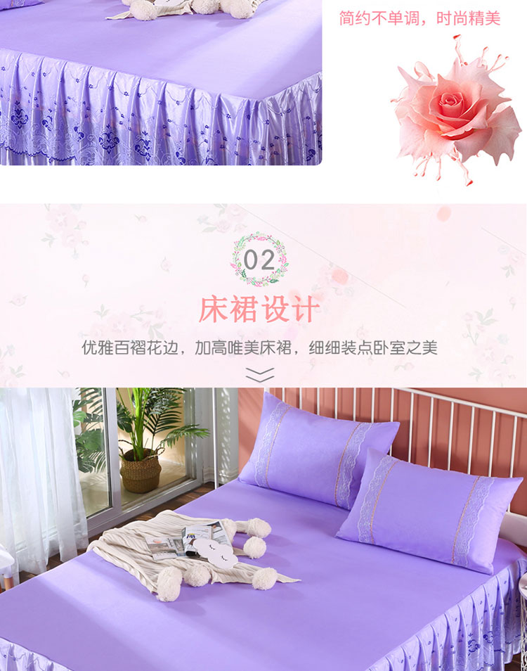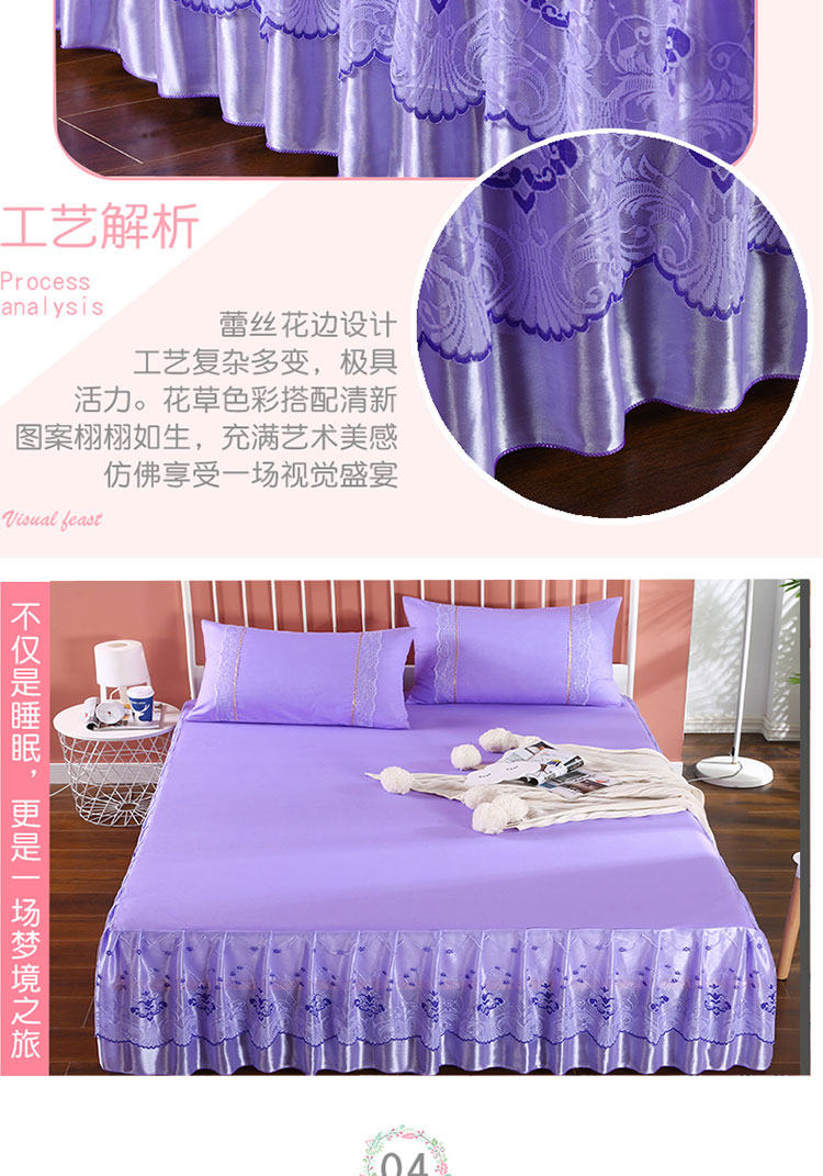 • 91家纺网 家纺一手货源 找家纺 情恒 2020新款蕾丝床裙 浪漫花都(紫色)