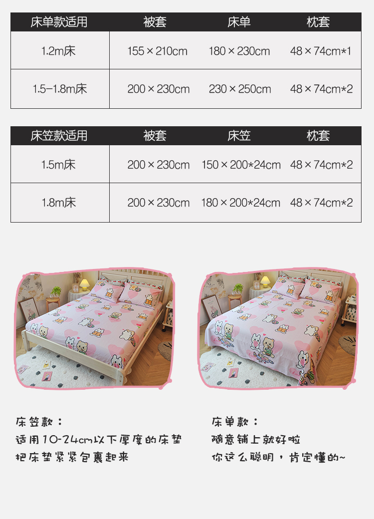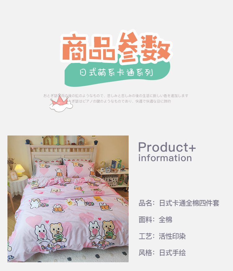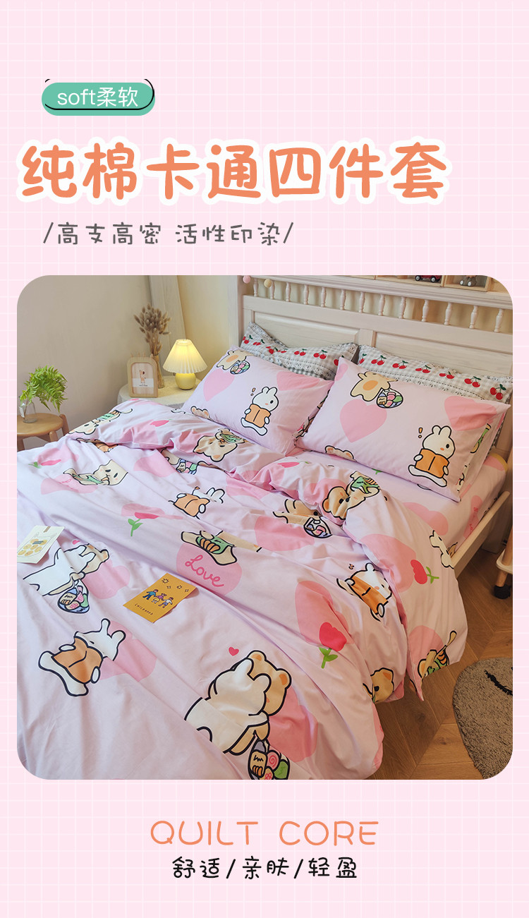 商品名称:田野 2020新款13372全棉手绘卡通系列四件套 爱心熊