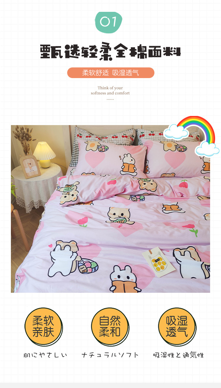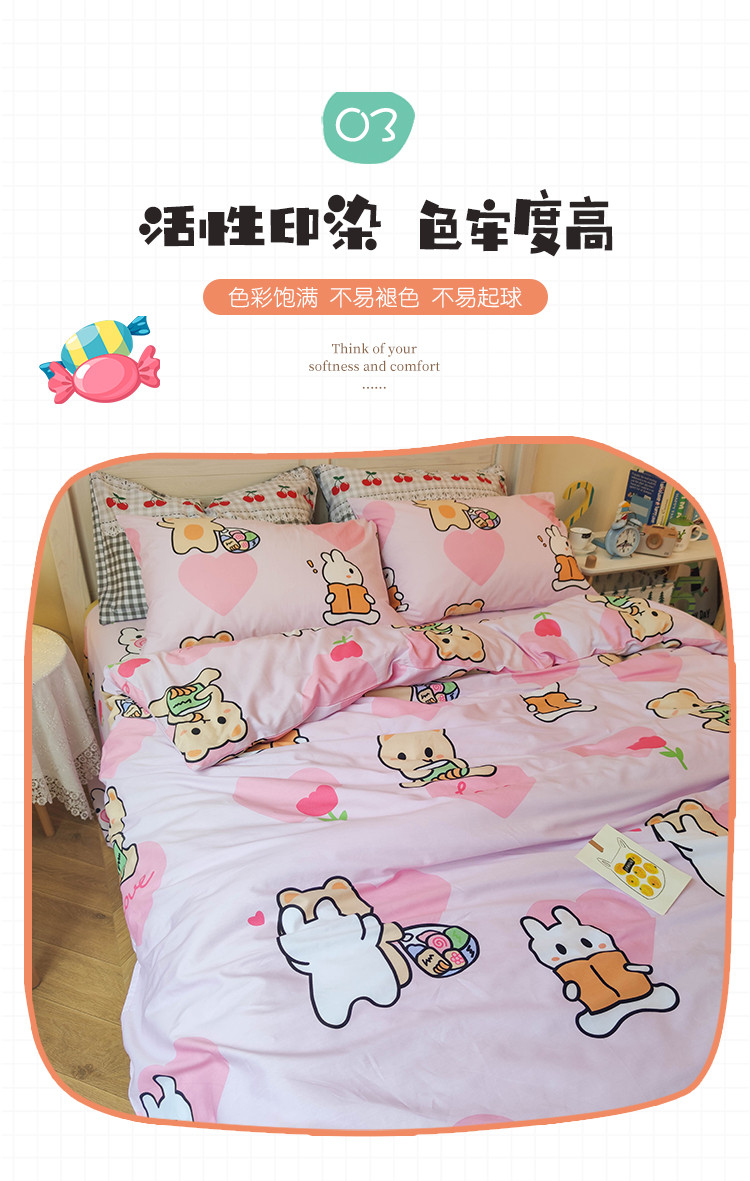 (总)田野 2022新款水洗棉小清新小碎花全棉四件套,花丛,花涧,绿婉,曼舞,桃夭,甜馨草莓,兔兔,银杏