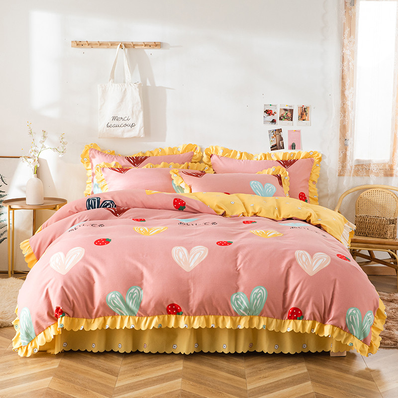 纽缦 2020新款加厚磨毛床裙款四件套 甜甜爱粉