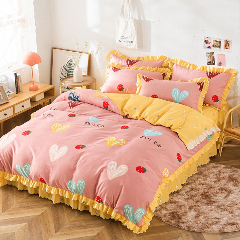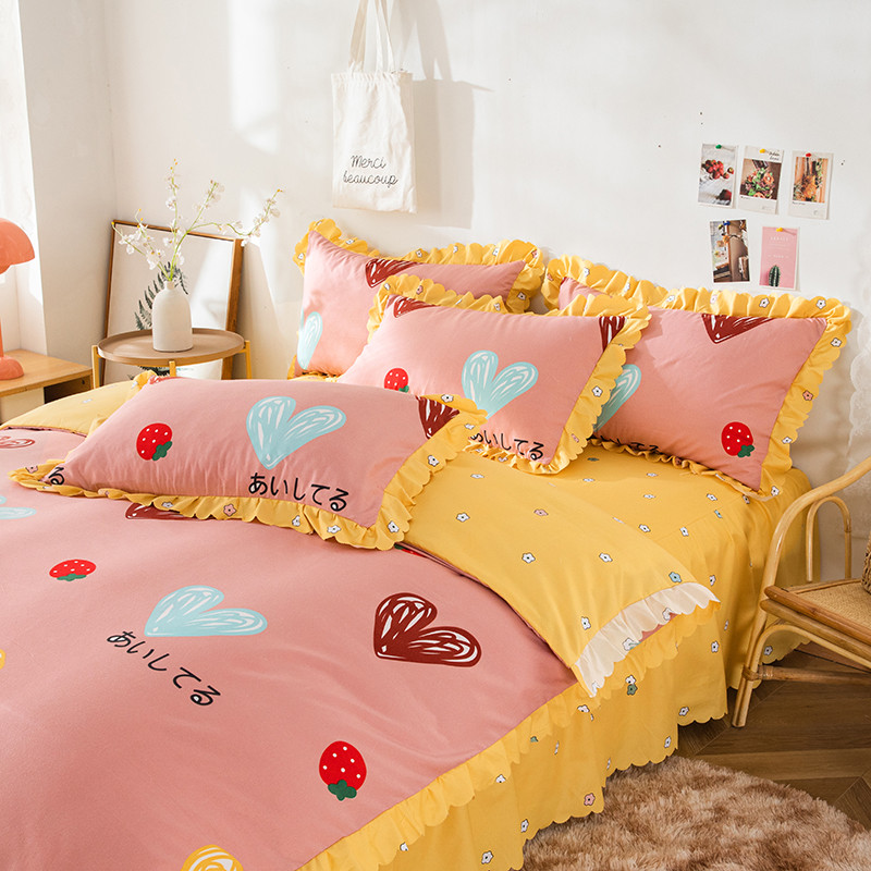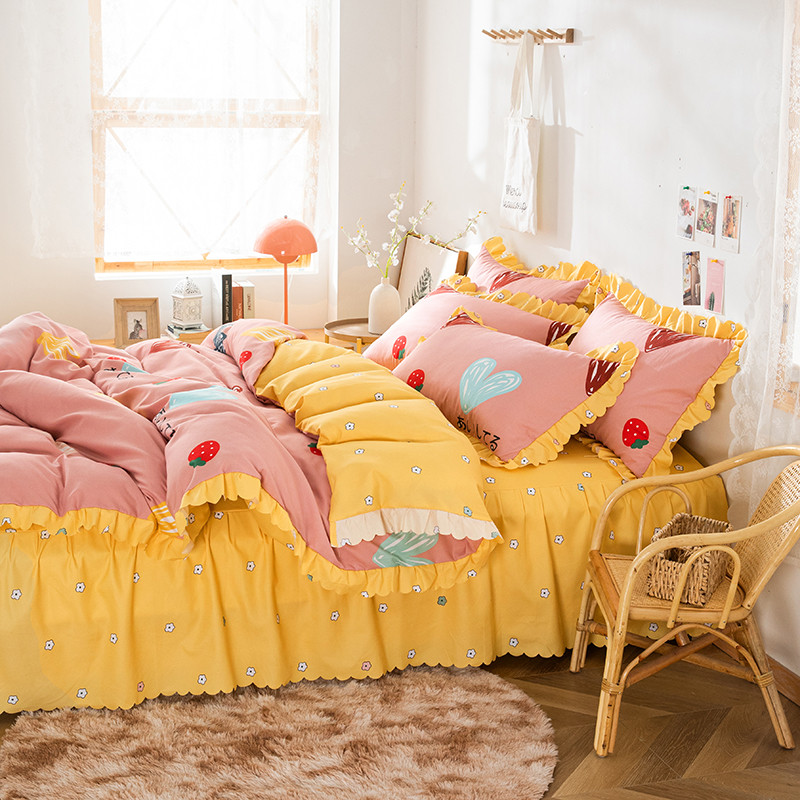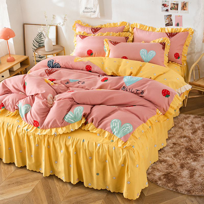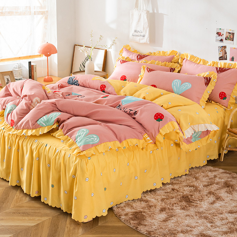 商品名称:纽缦 2020新款加厚磨毛床裙款四件套 甜甜爱粉