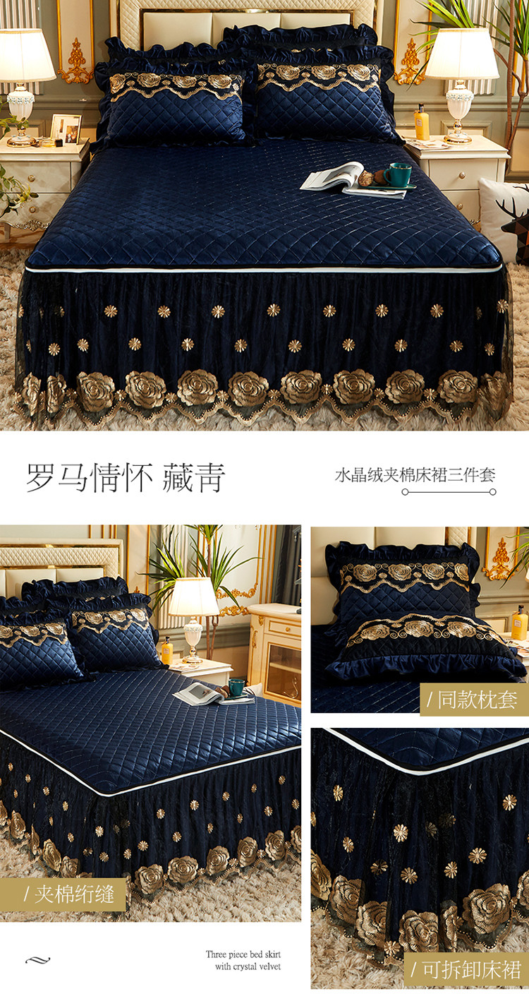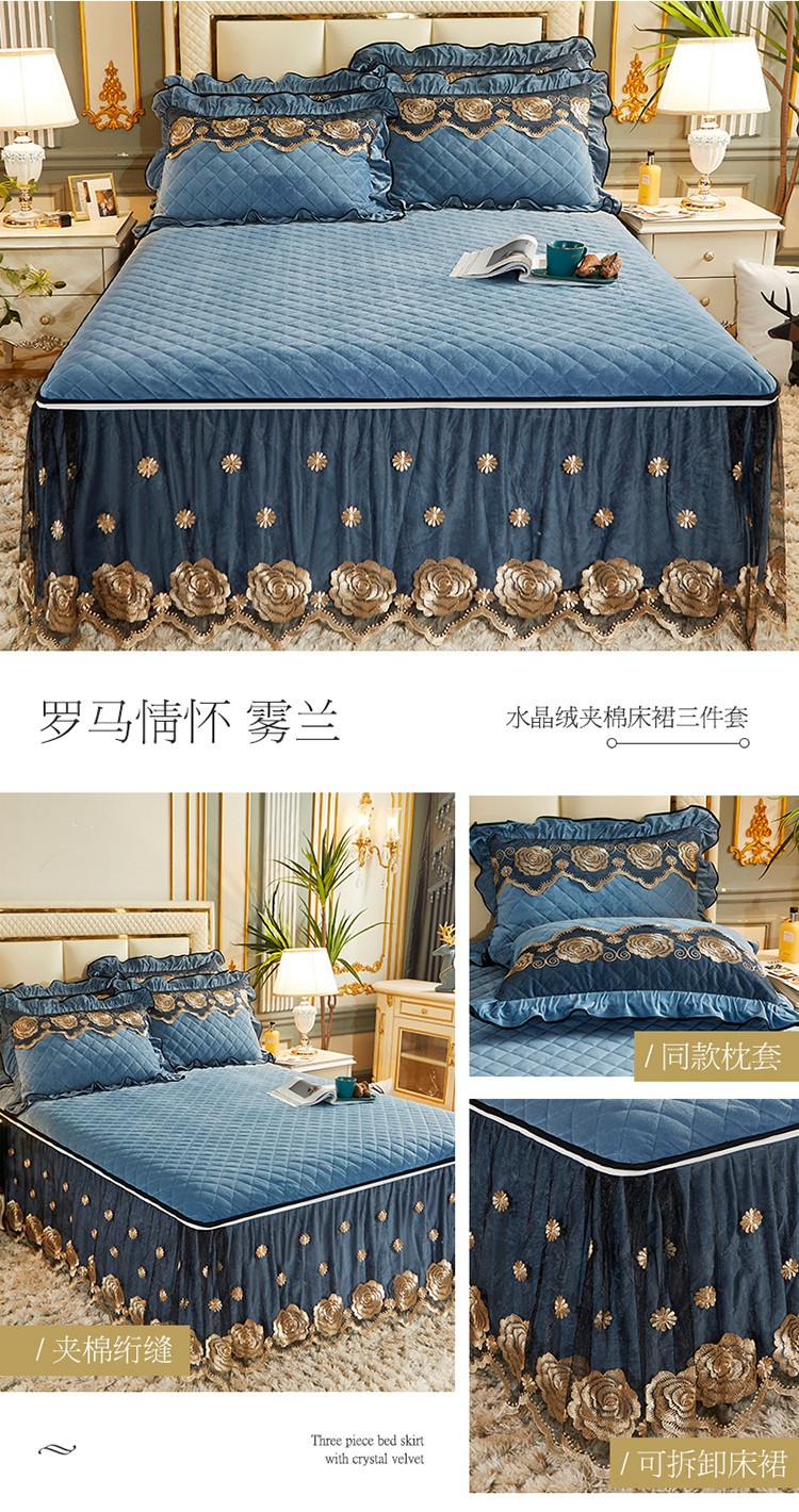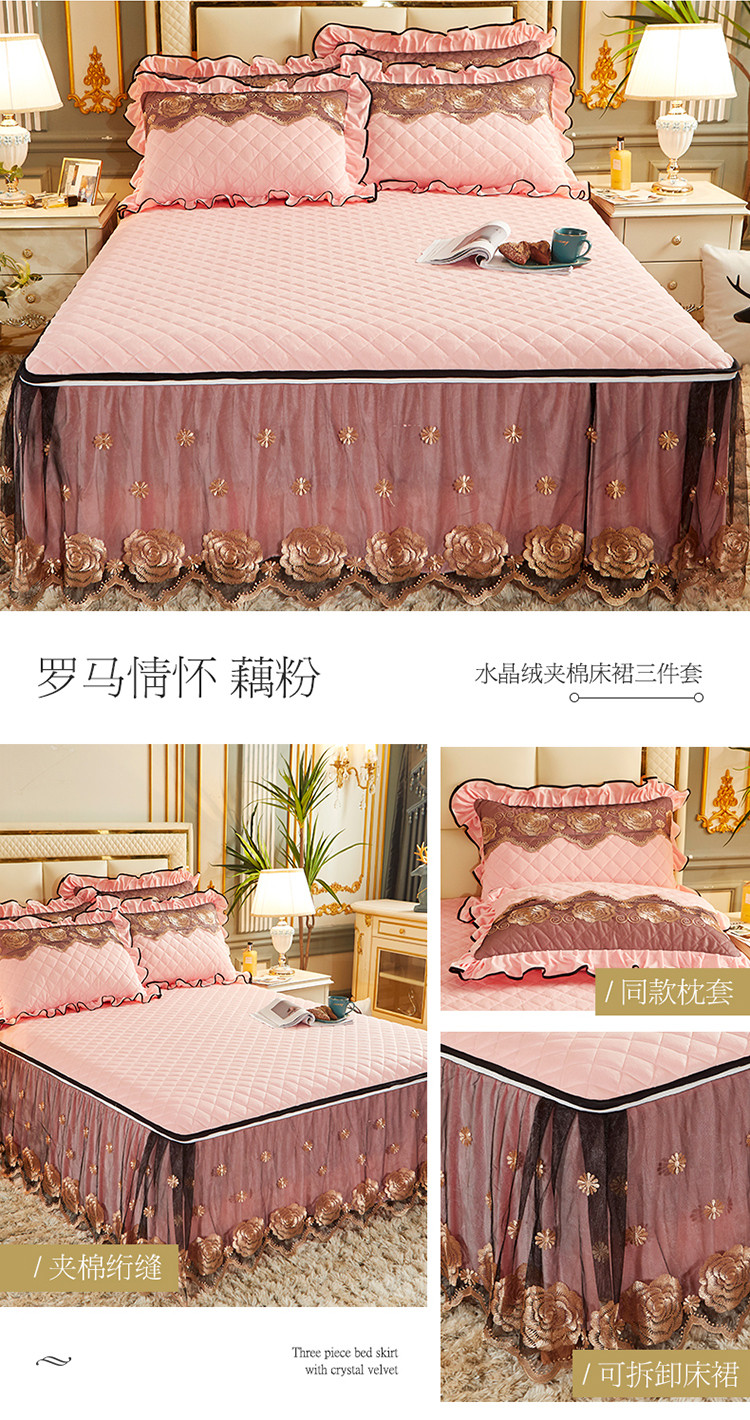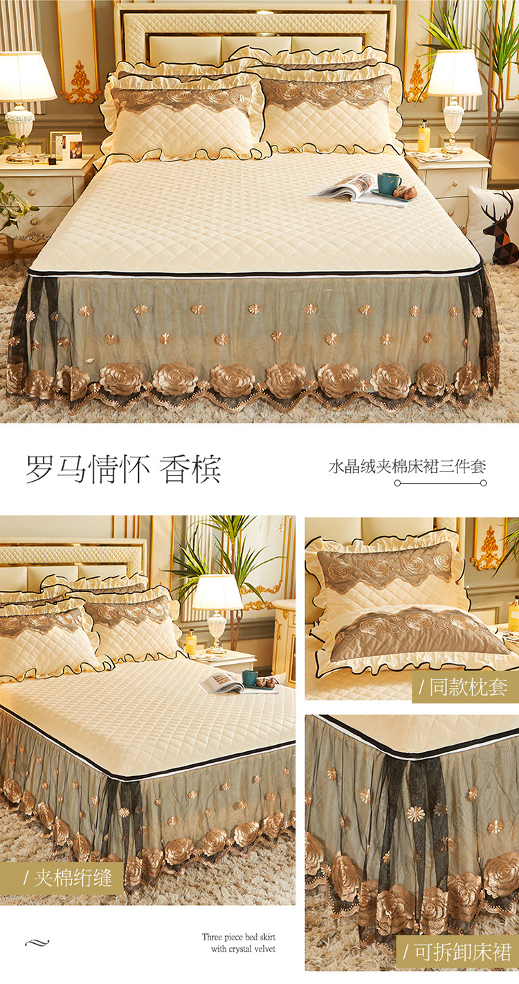 (总)网红馆 2025新款罗马情怀水晶绒床裙三件套