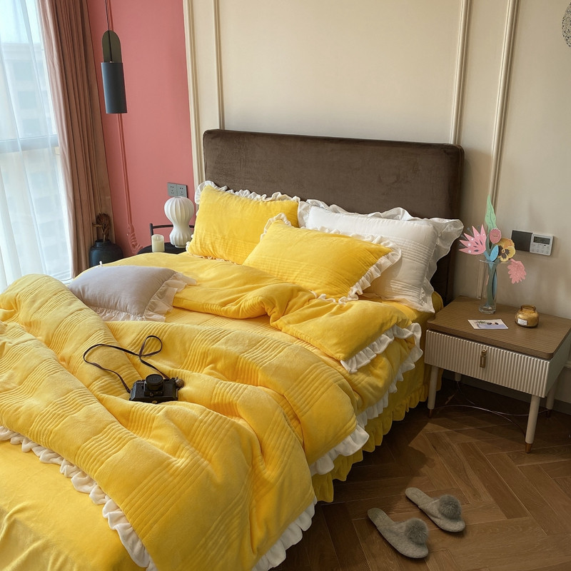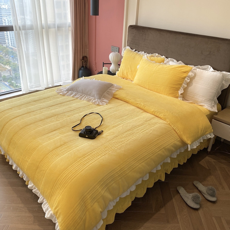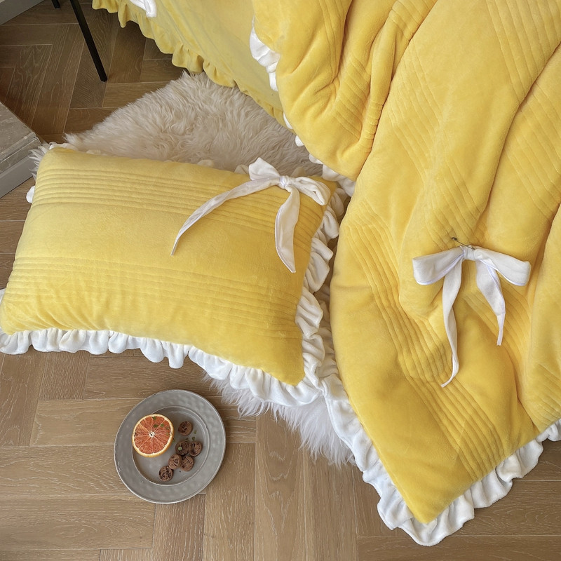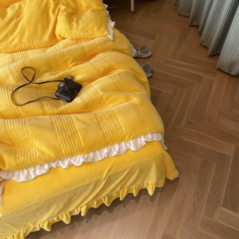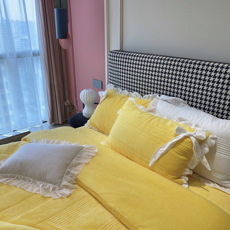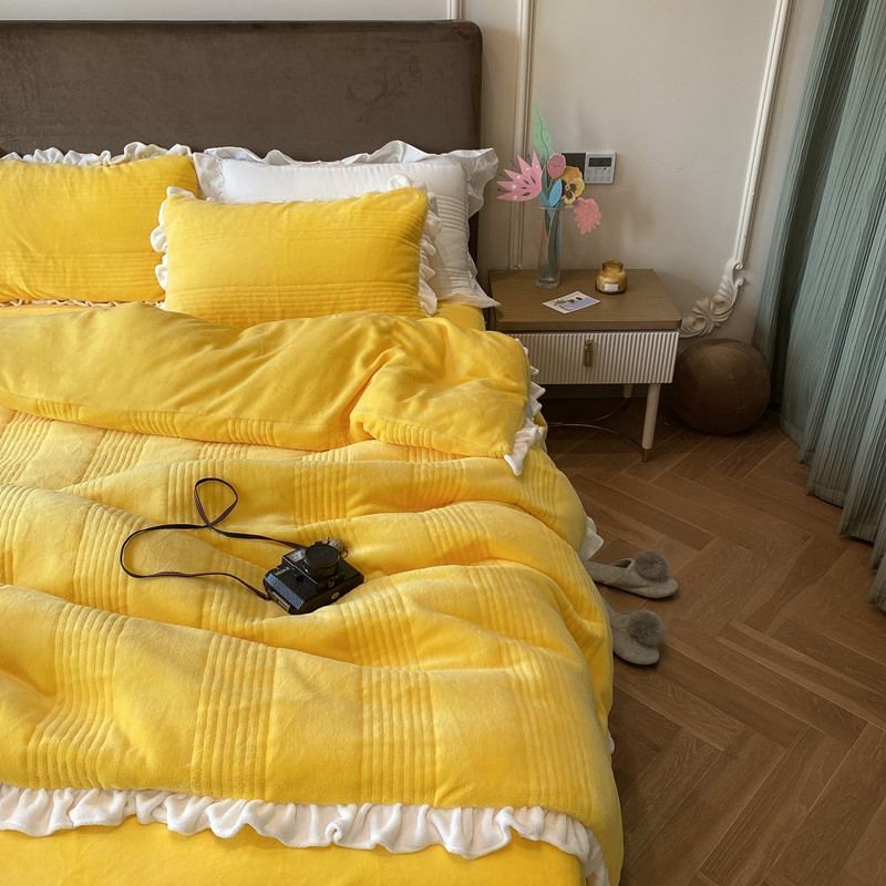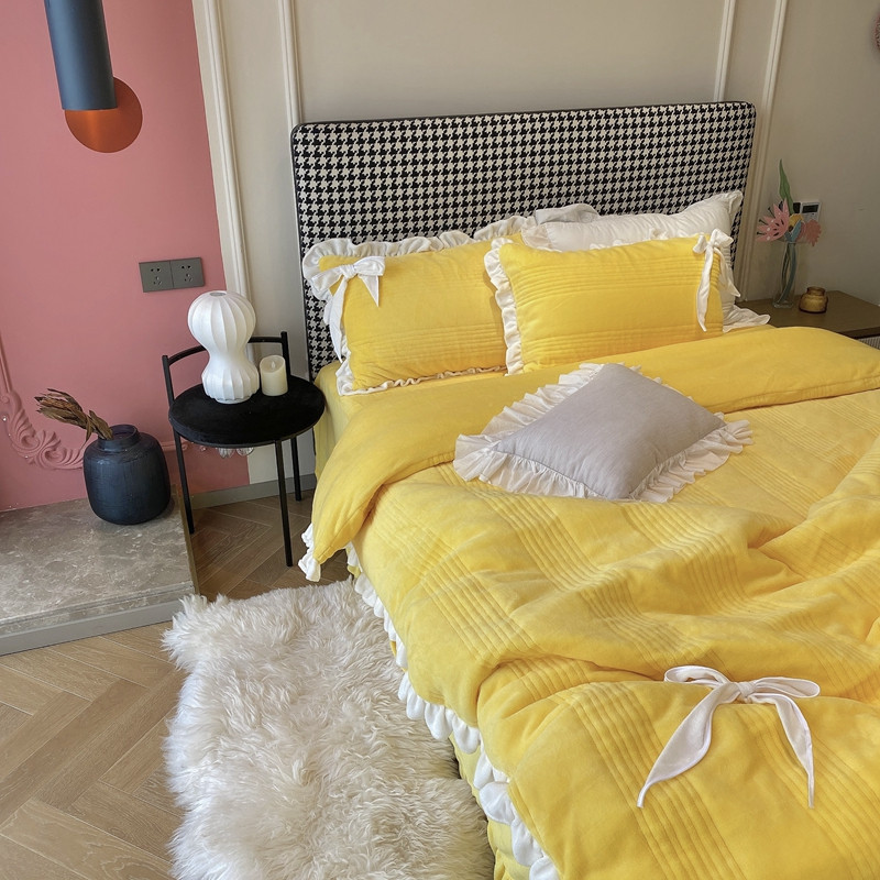 当前位置: 91家纺网 > 商品网购 > 床品套件 > 四件套 > 牛奶绒四件套 > 北纬27度2020新款韩式多功能牛奶绒四件套 可爱黄
