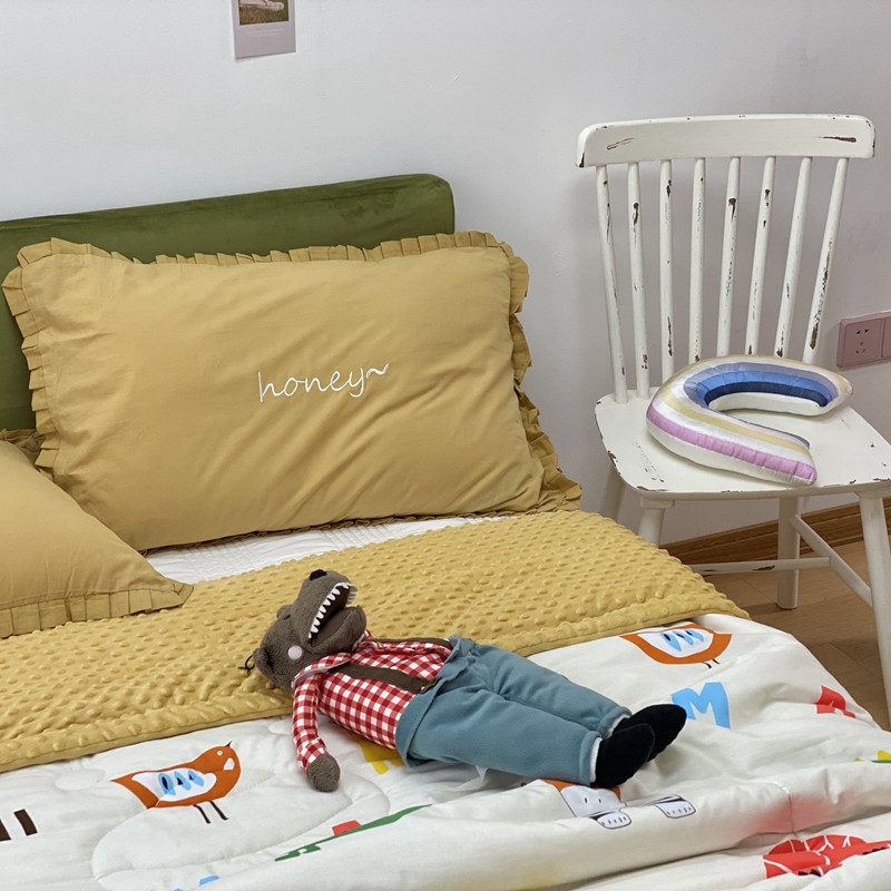 总北纬27度 2022法式双层花边全棉夹棉床裙四件套直播爆款,高级白,公主粉,海洋蓝,可爱黄