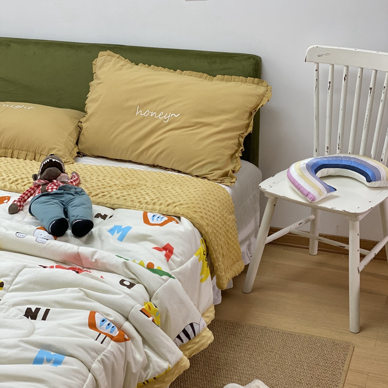 (总)北纬27度 2022雪纺花边印花牛奶绒床盖款四件套直播,春日油画-白,花季-紫,兔奇-白,幸运花-黄,幸运花-兰,早春晴朗-白