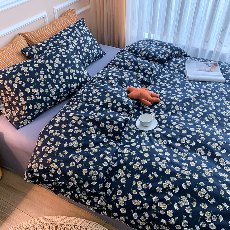 (总)感遇家纺 2022新款全棉印花四件套,格子小花,黑格恐龙,蓝色心情,浅暖