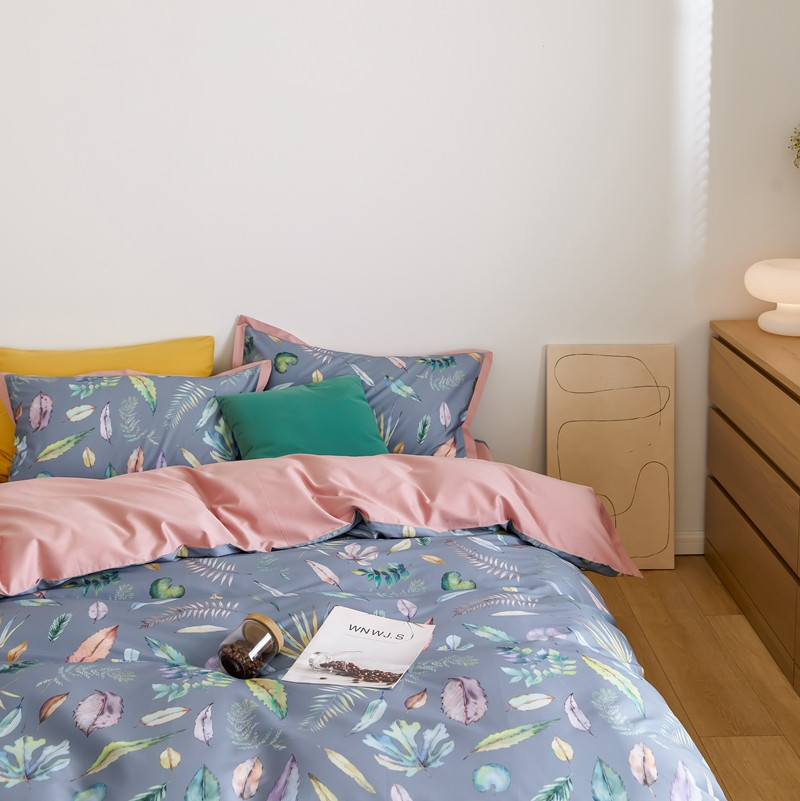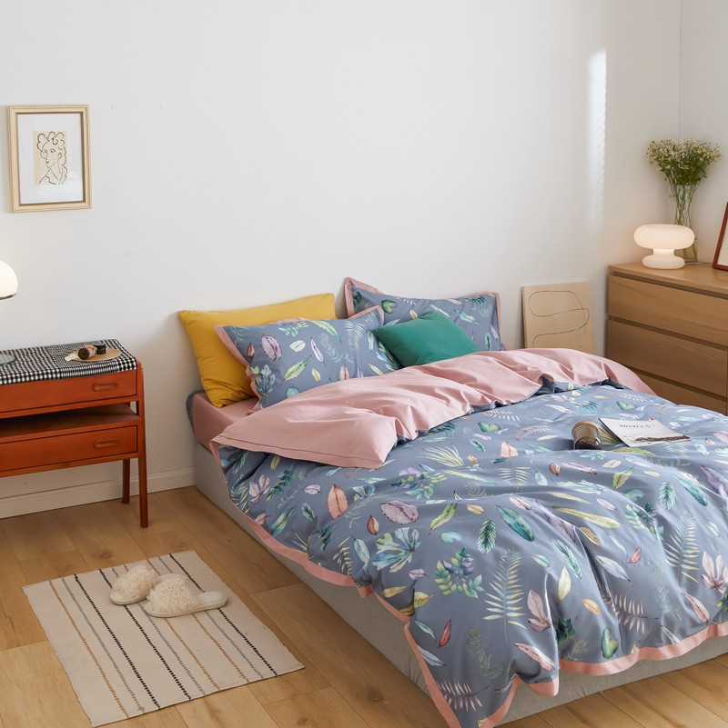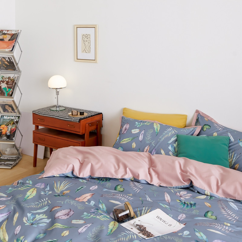 优然居 2021新款小边款小美风格四件套 纽曼灰蓝