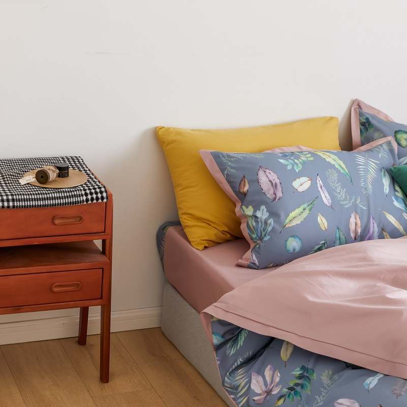 (总)优然居家纺 2025新款50支全棉纯棉印花法式双头木耳边四件套,觅棠,莫妮卡艾绿,莫妮卡罗兰,慕斯粉,薇薇安