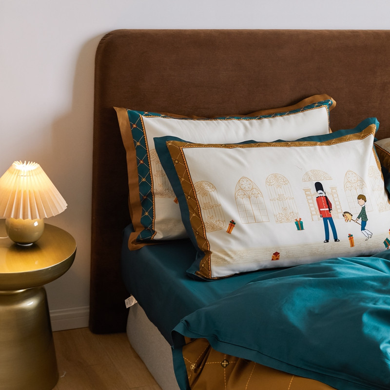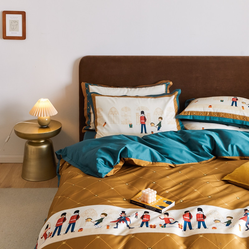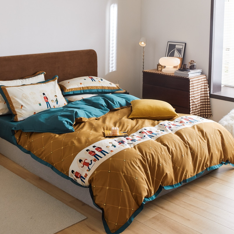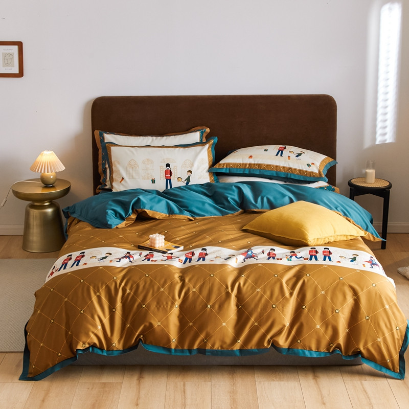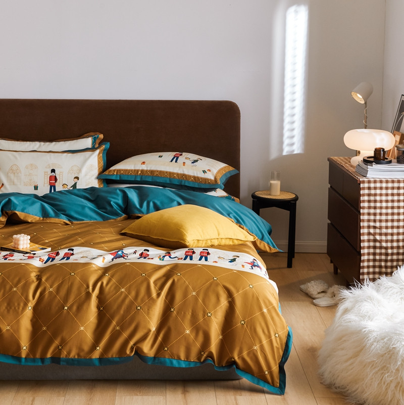 (总)优然居2020新款100支婴儿暖绒棉轻奢风刺绣四件套,大地黄加藏青,复古咖青,轻奢粉灰,霜绿大地色,霜绿复古色