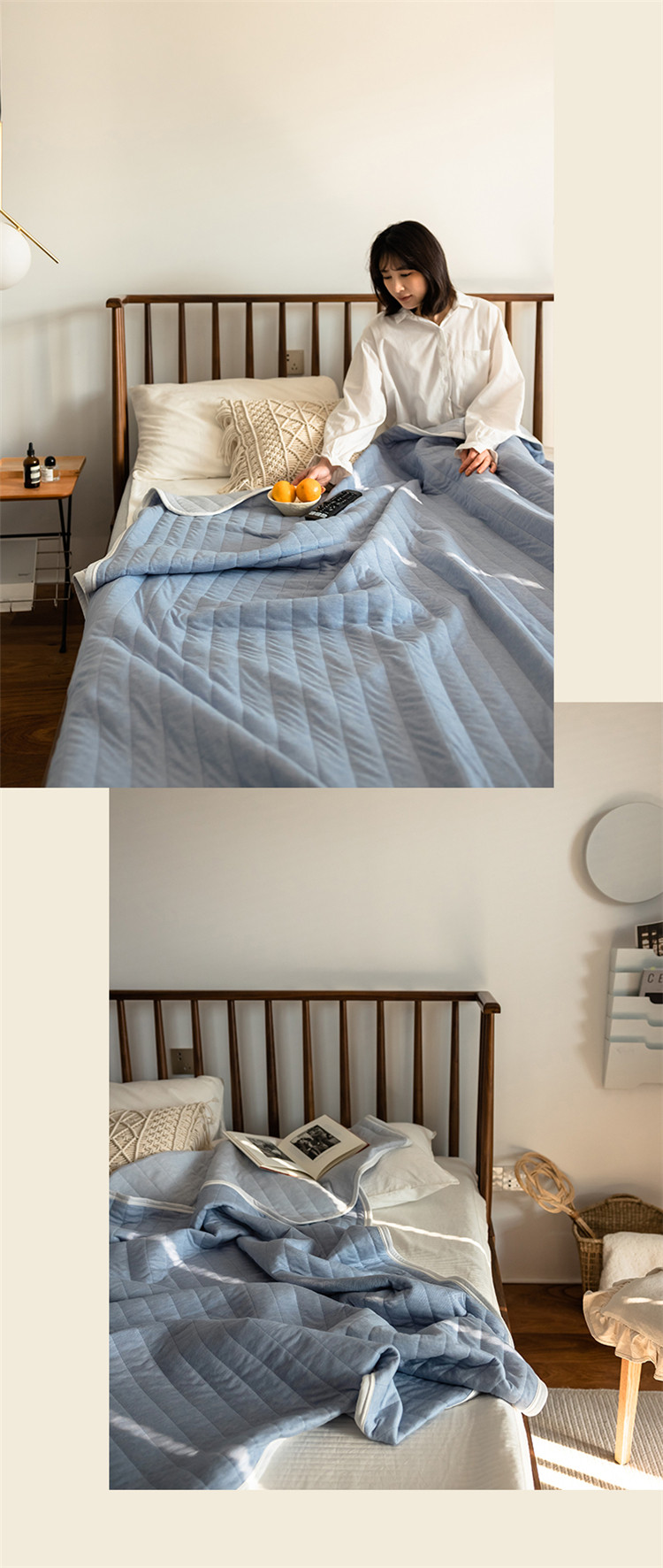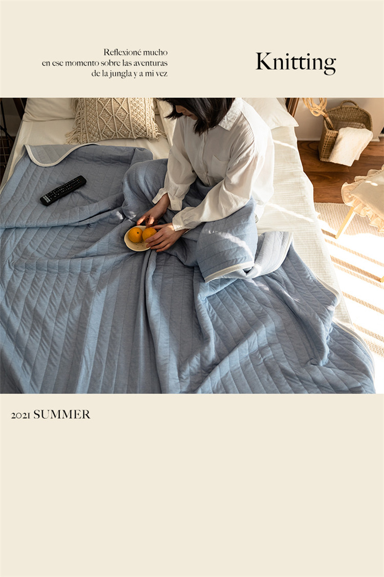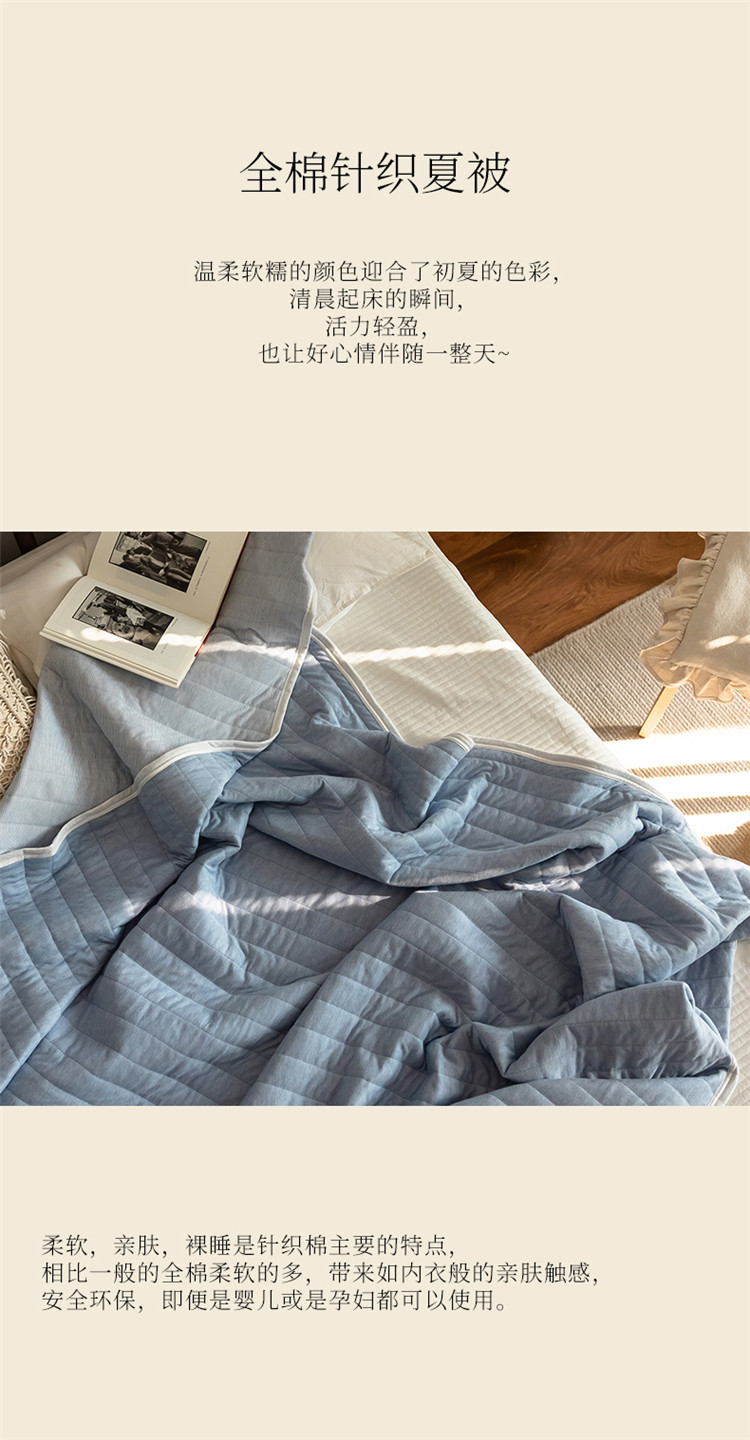 法芙娜家纺 全棉针织棉夏被全棉空调被 纯色天蓝